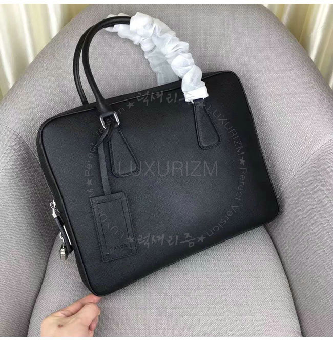 [스페셜오더]PRADA-2ve363 프라다 사피아노 가죽 블랙 브리프케이스