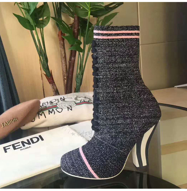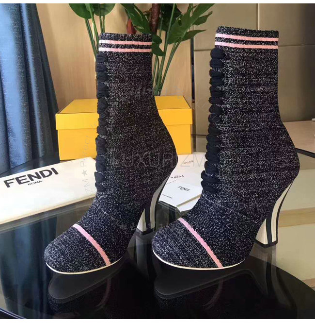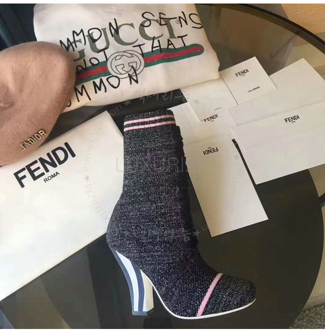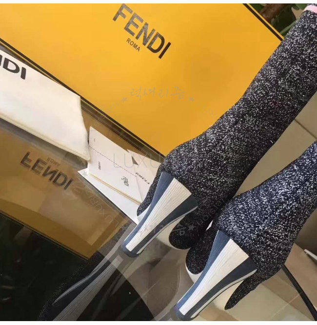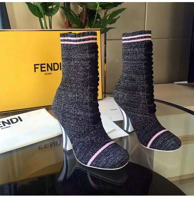 FENDI-8T6514 펜디 투톤 스트라이프 장식 블랙 스트레치 패브릭 부츠