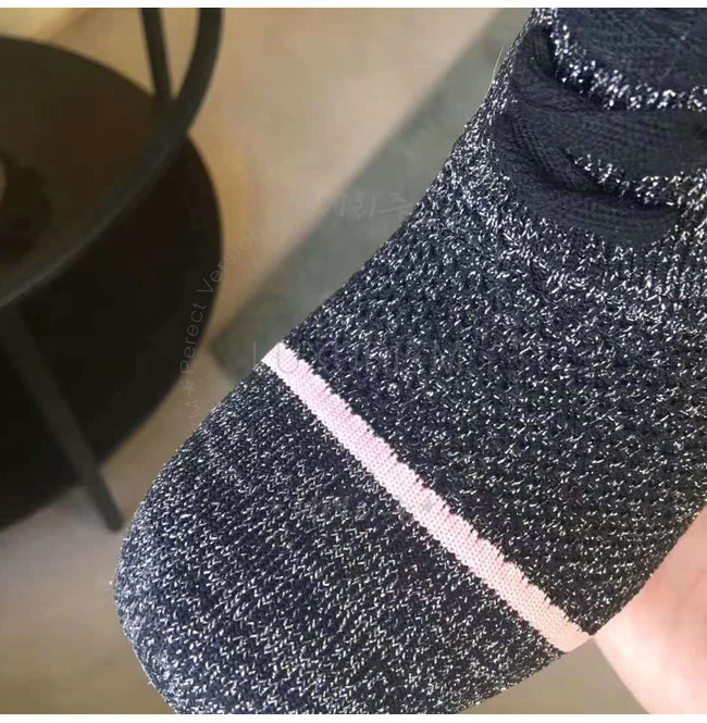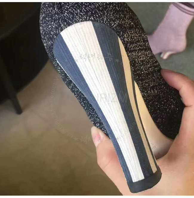 메탈릭 얀 소재. 양말과 비슷한 윗부분에 립 디테일의 엣지와 핑크