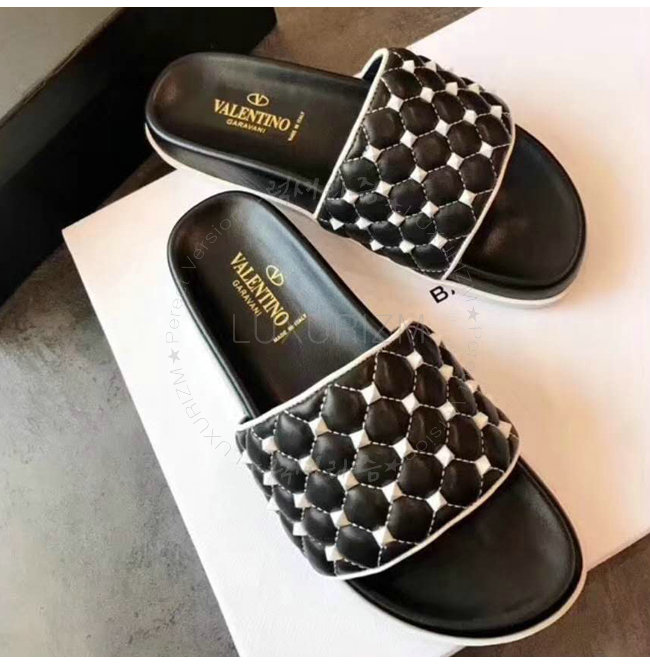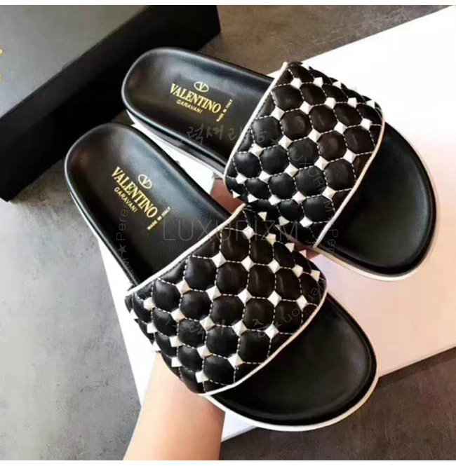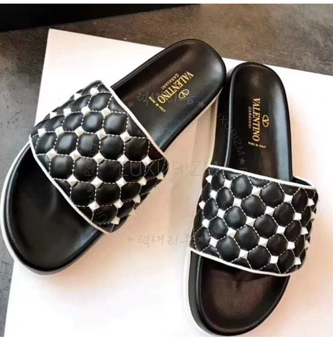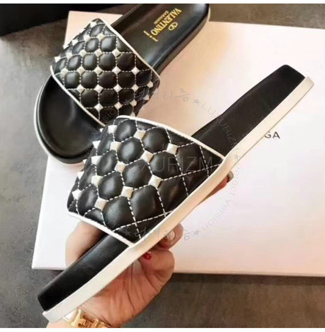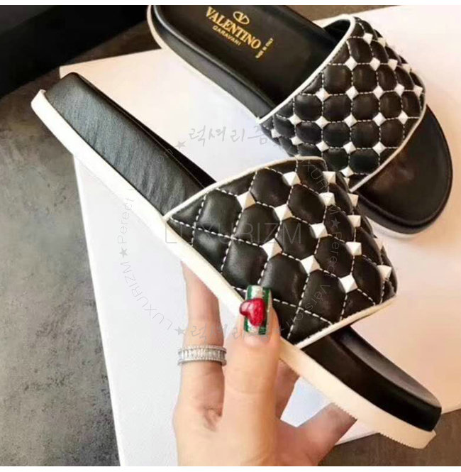 VALENTINO-PW2S0F01 발렌티노 블랙 프리 락스터드 스파이크 슬라이드 샌들