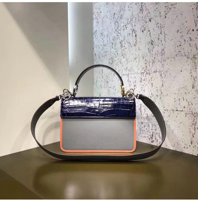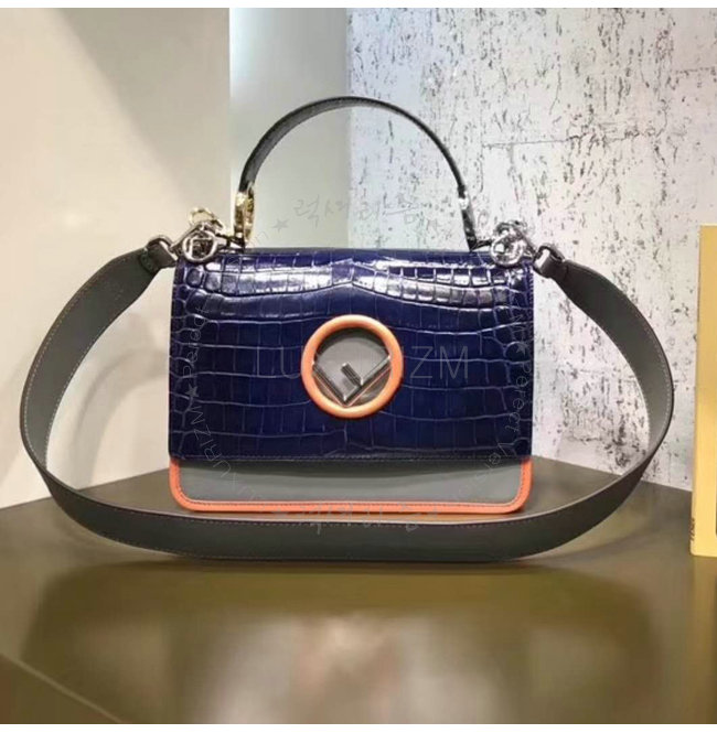 [스페셜오더]FENDI-8BT284 펜디 악어무늬 가죽 더블 F 블루 칸 아이 백