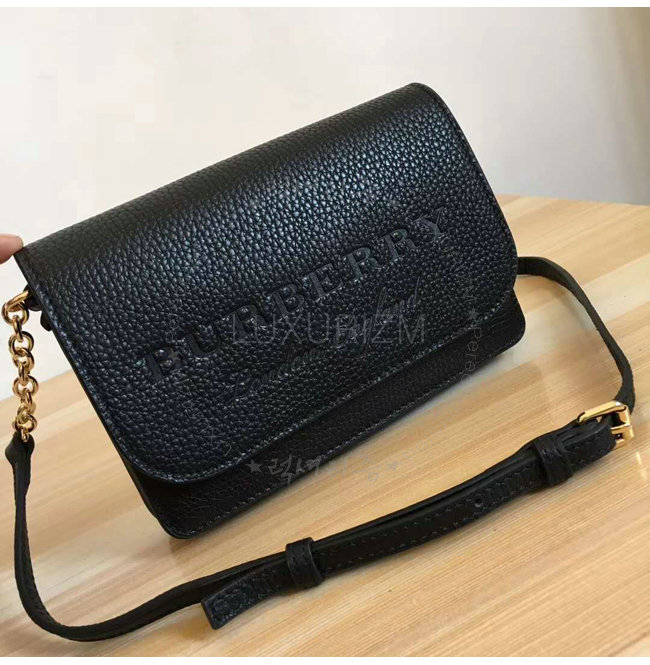 [스페셜오더]BURBERRY-40683731 버버리 블랙 디태처블 스트랩 엠보싱 가죽 체인 백