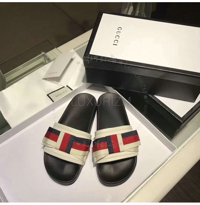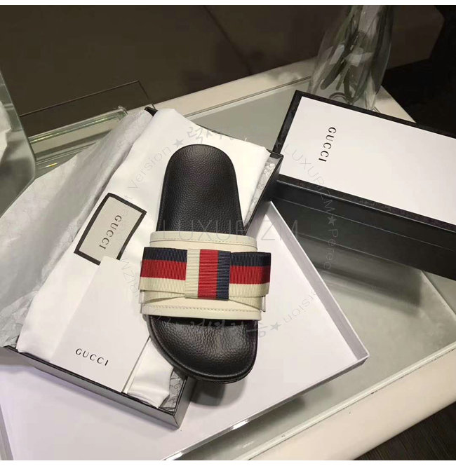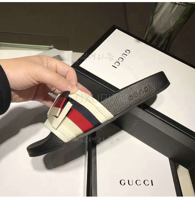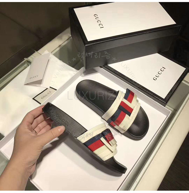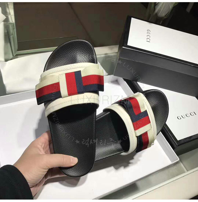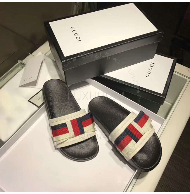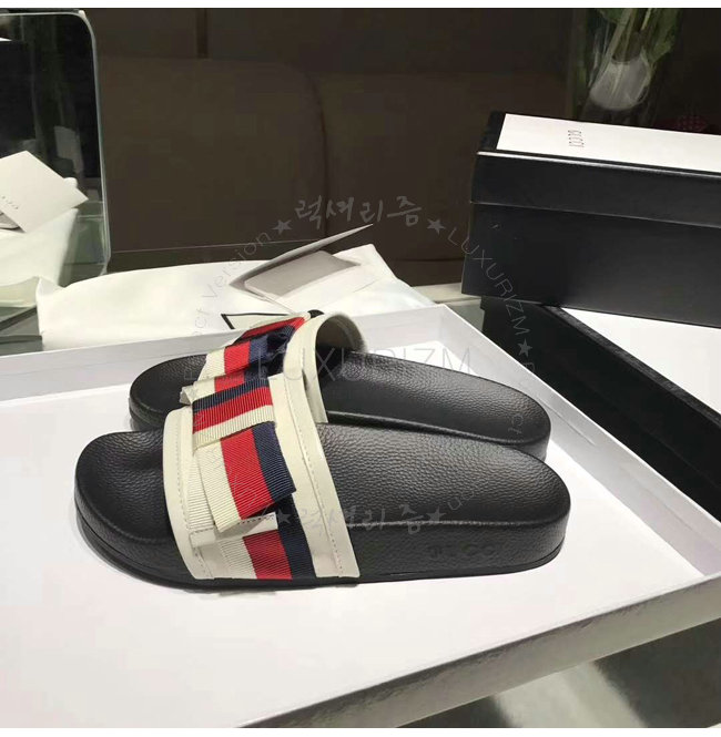 GUCCI-498316 1146 구찌 Web 보운 장식 블랙 슬라이드 가격 : 180,000원