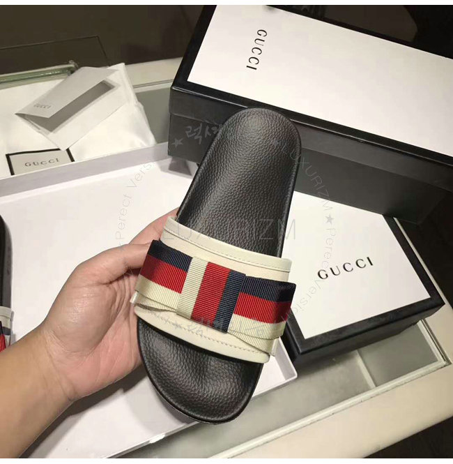 GUCCI-498316 9620 구찌 Web 보운 장식 화이트 슬라이드