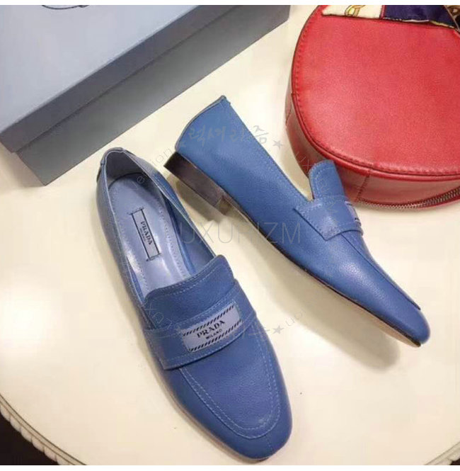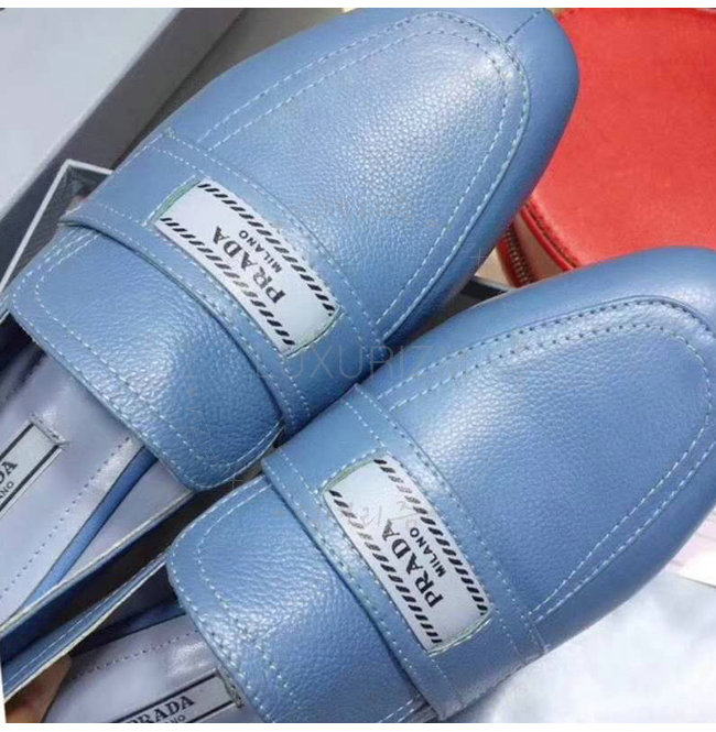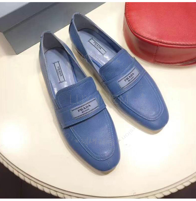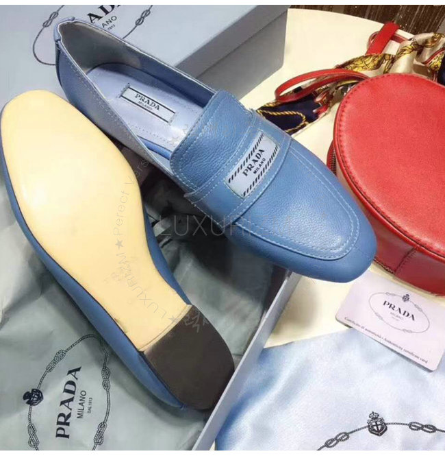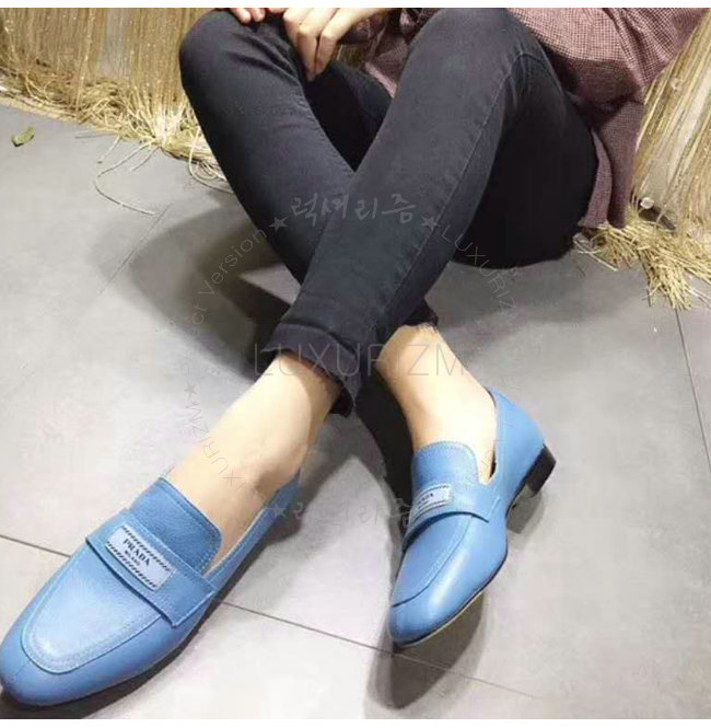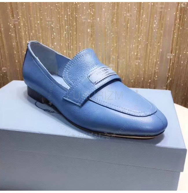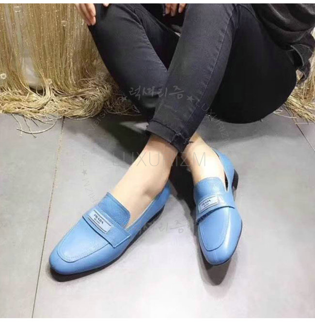 PRADA-1D485I 프라다 송아지 가죽 블루 에티켓 모카신