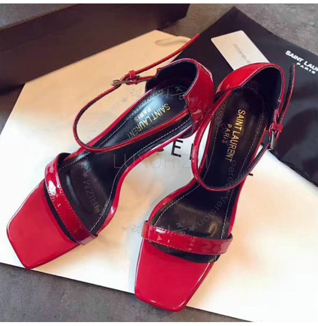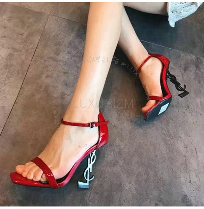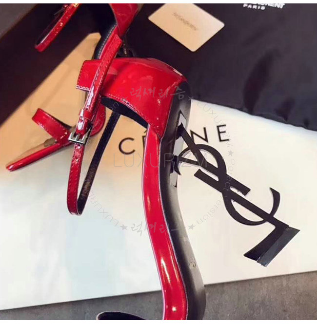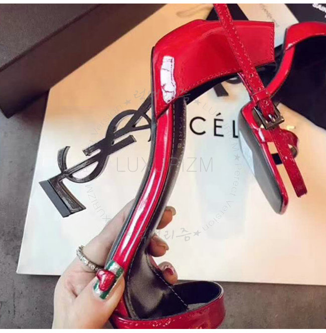 SAINT LAURENT-500250 생 로랑 송아지 가죽 메탈 YSL 모노그램 힐 레드 샌들
