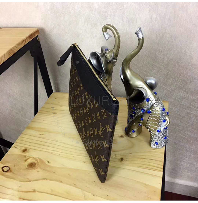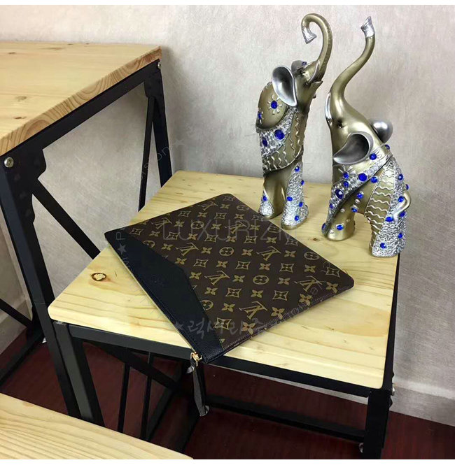 큰 지퍼포켓 1개 내부 플랫포켓 1개 모노그램 코팅 캔버스