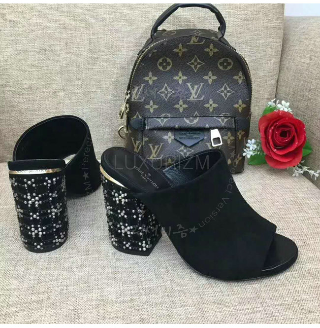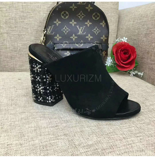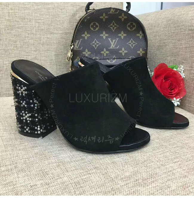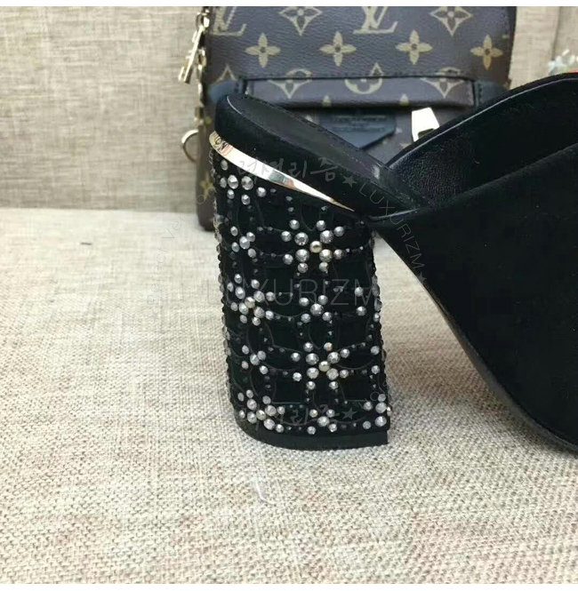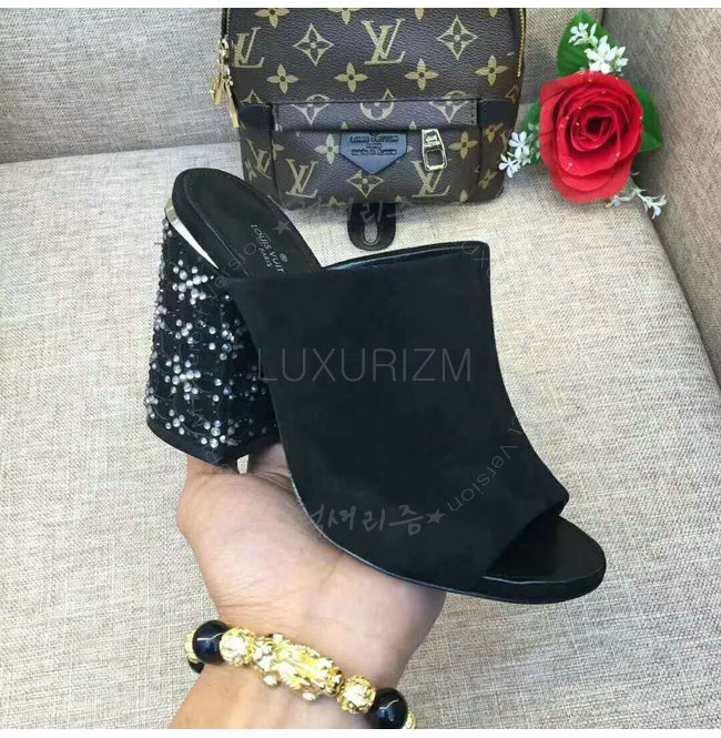 LOUIS VUITTON-1A3NJQ 루이비통 스트라스 트리밍 하이힐 뮬