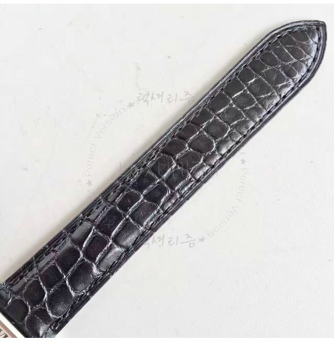 -그레인 송아지 가죽 스트랩 조절 가능한 스틸 더블 디플로이언트 버클.