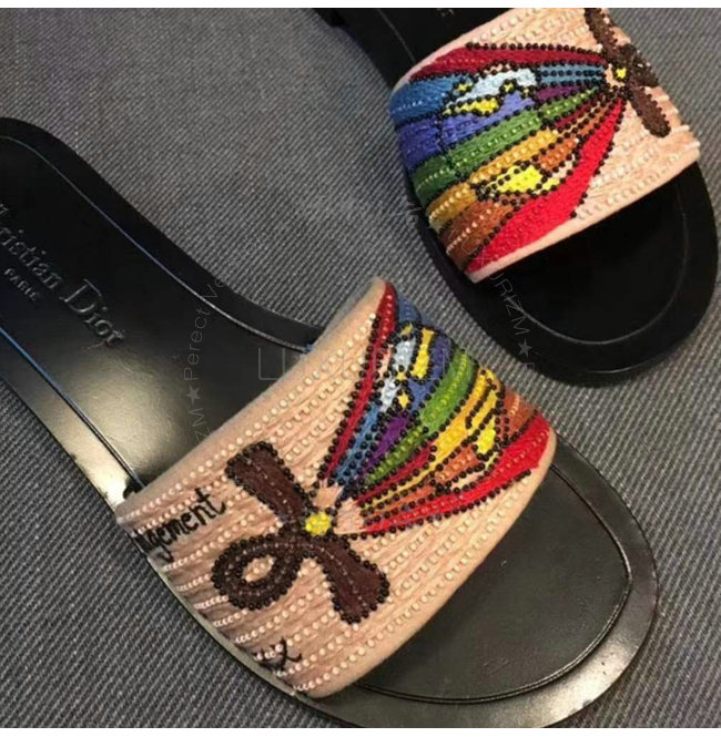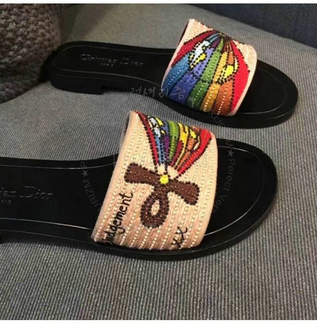 [스페셜오더]DIOR-KCF152 디올 심판 카드 자수 장식 패브릭 뮬