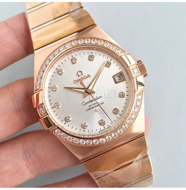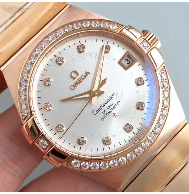 [스페셜오더]OMEGA-오메가 컨스텔레이션 레드 골드 다이아 인덱스 베젤 실버 워치 38mm