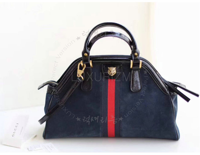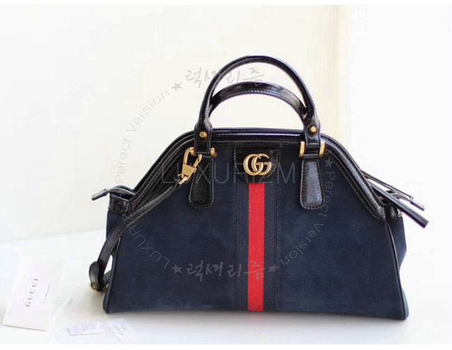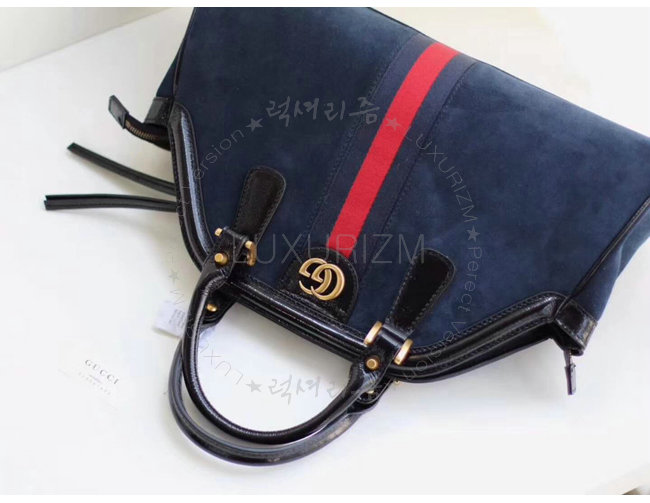 [스페셜오더]GUCCI-516459 8774 구찌 RE(BELLE) 블루 스웨이드 가죽 미디엄 탑 핸들 토트백
