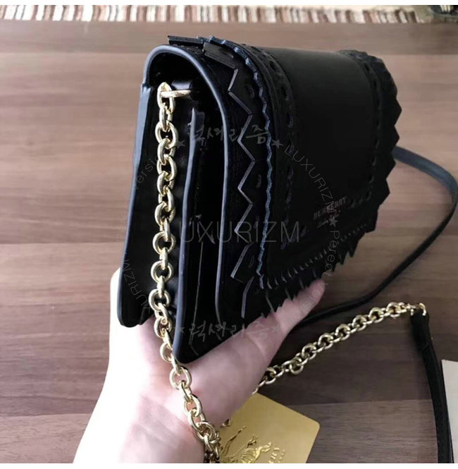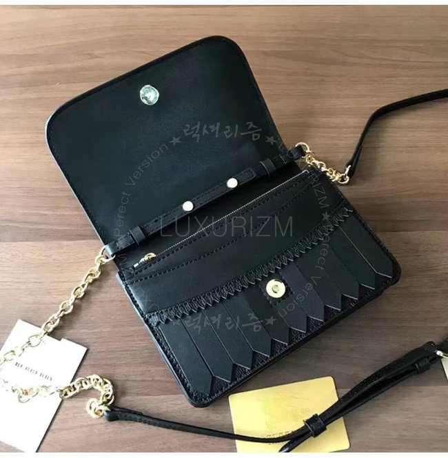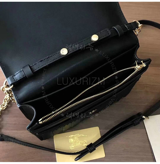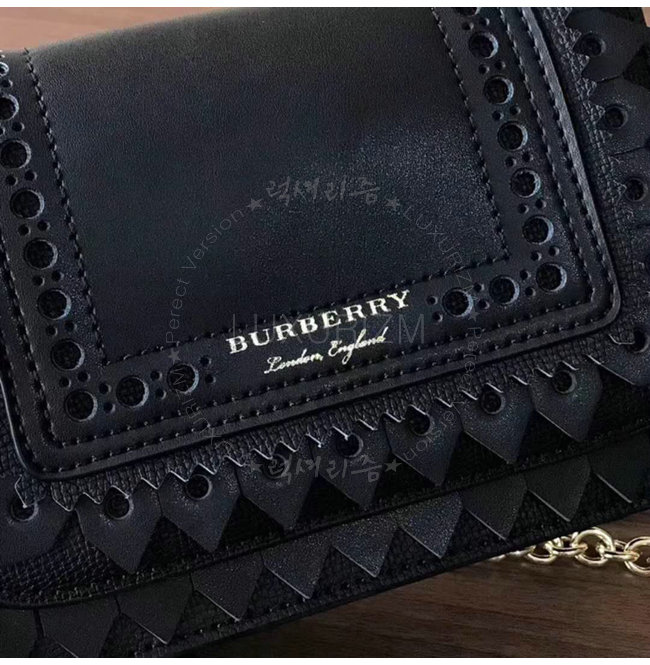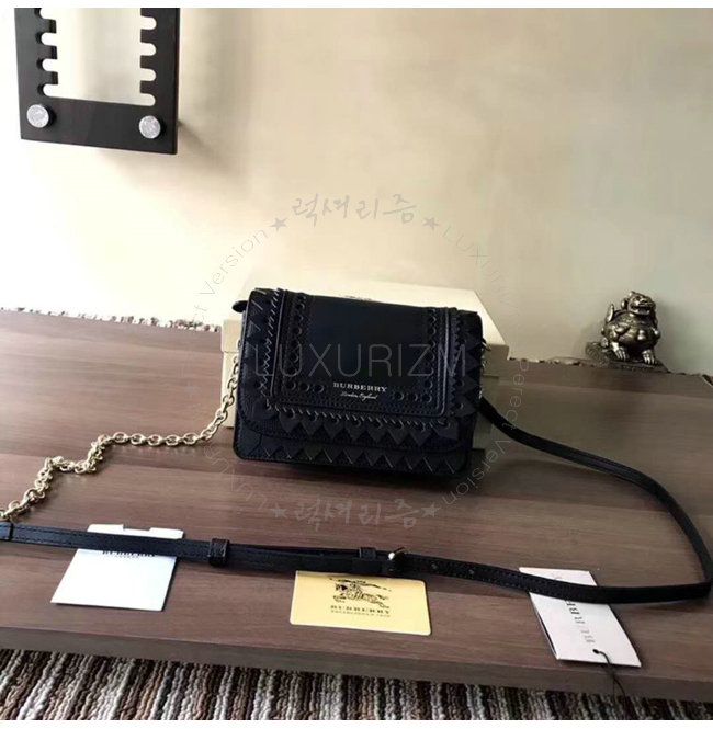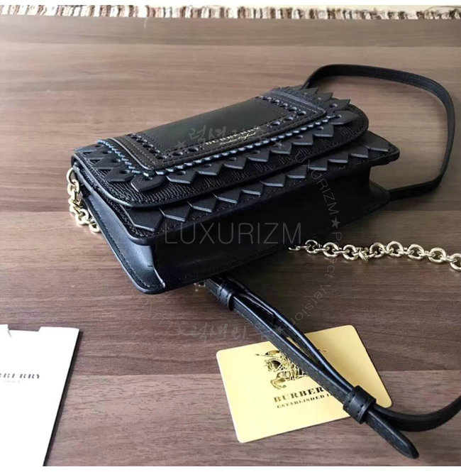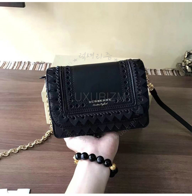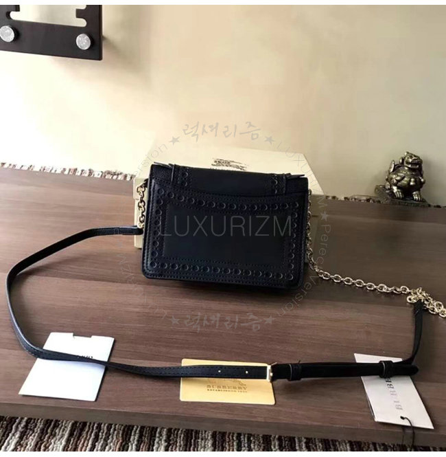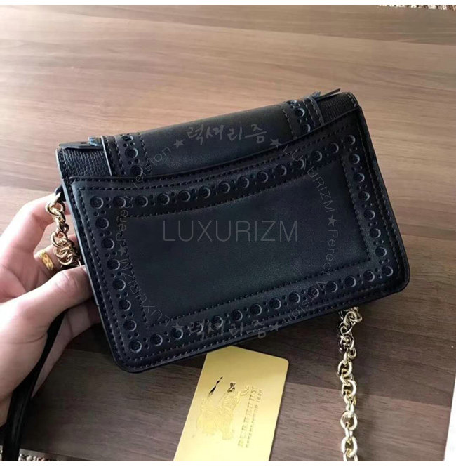 [스페셜오더]BURBERRY-40683841 버버리 송아지 가죽 디태처블 스트랩 브로그 디테일 블랙 체인 미니 백
