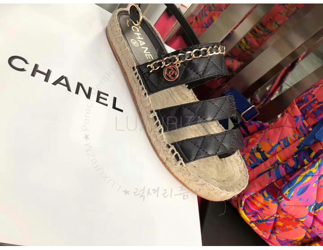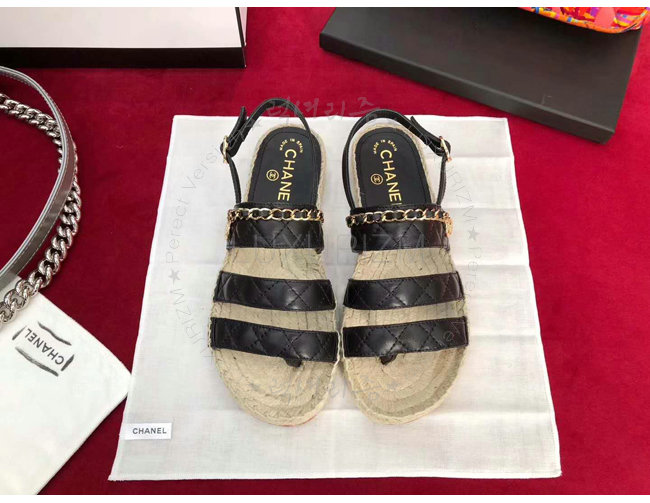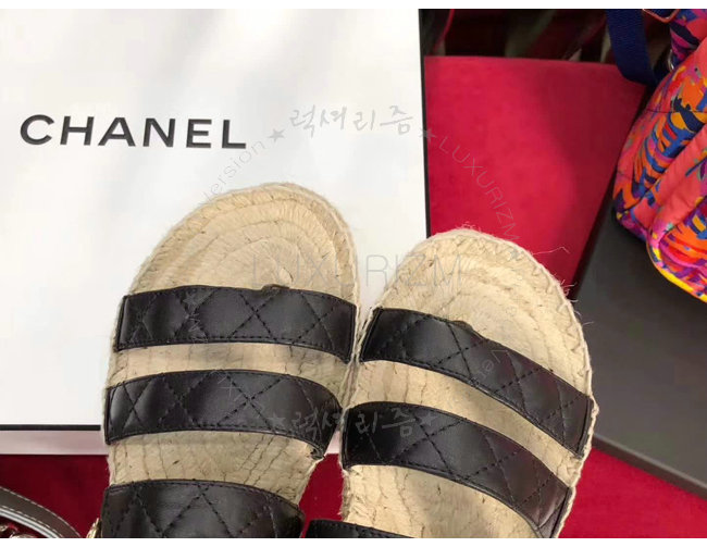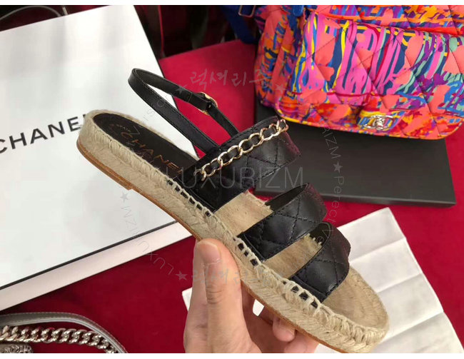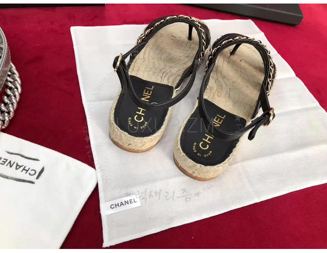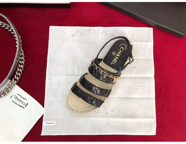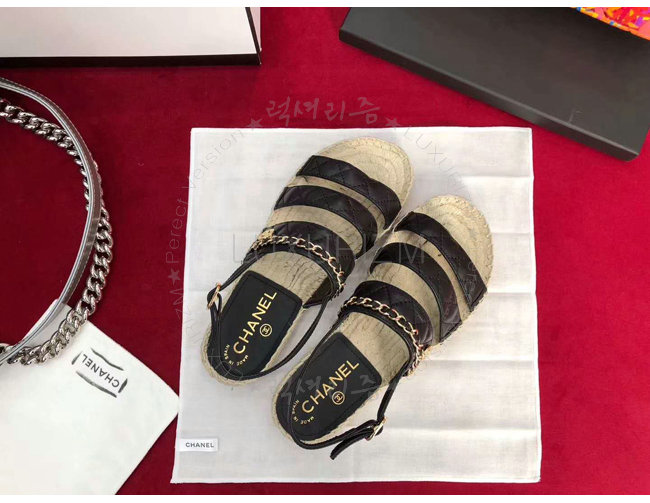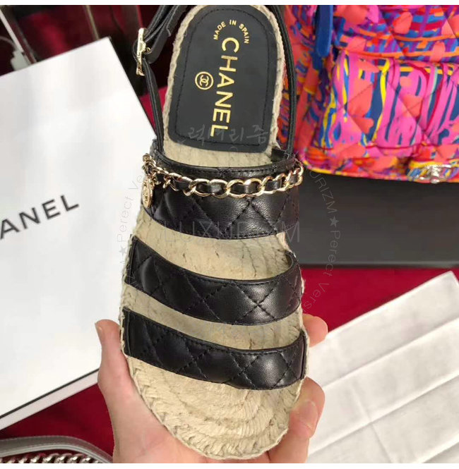 CHANEL-G33355 샤넬 램스킨 골드 메탈 블랙 샌들