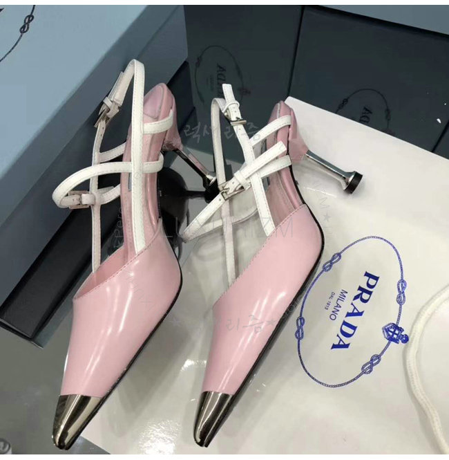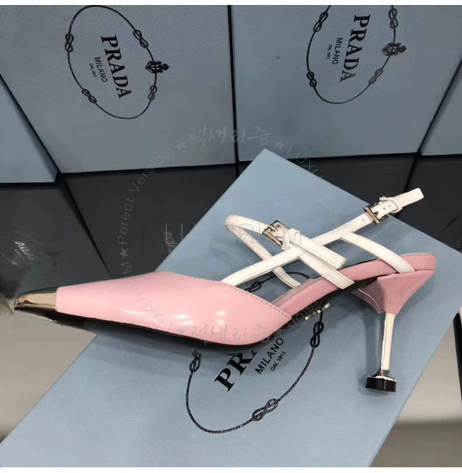 PRADA-1I297I 프라다 투톤 가죽 핑크 포인티토 펌프스
