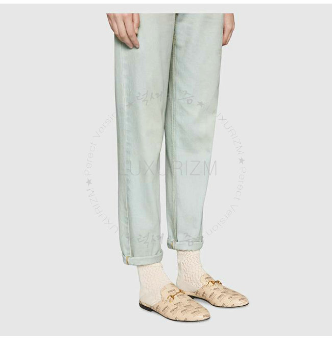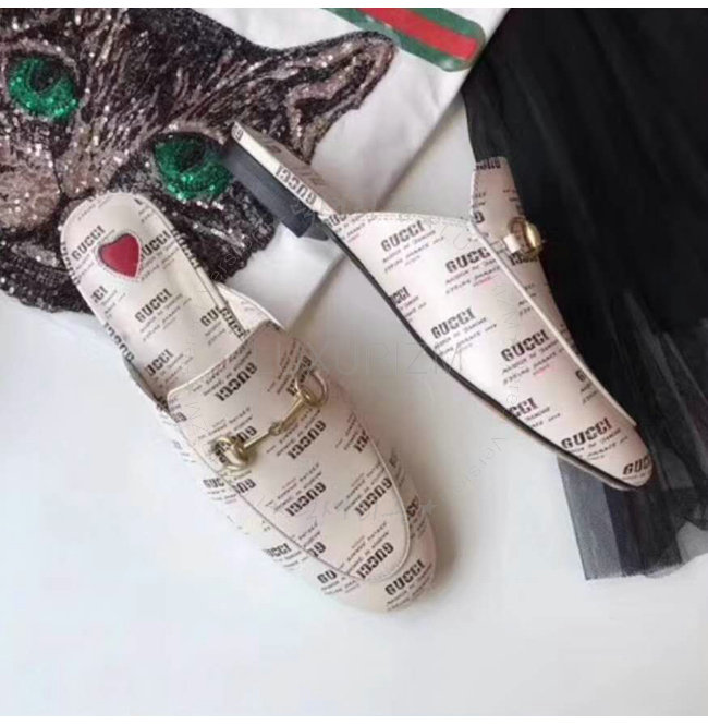GUCCI-505511 9355 구찌 프린스타운 구찌 스탬프 프린트 가죽 슬리퍼