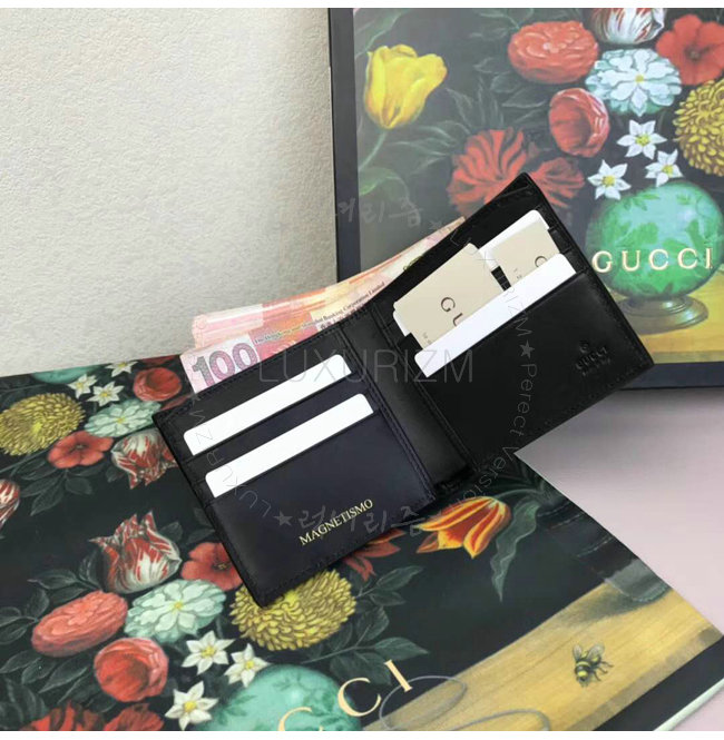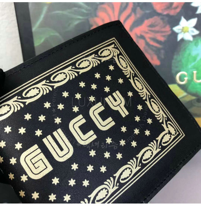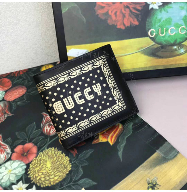 [스페셜오더]GUCCI-510491 1055 구찌 블랙 가죽 Guccy 프린트 2단 지갑