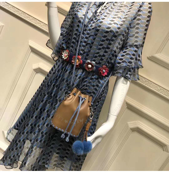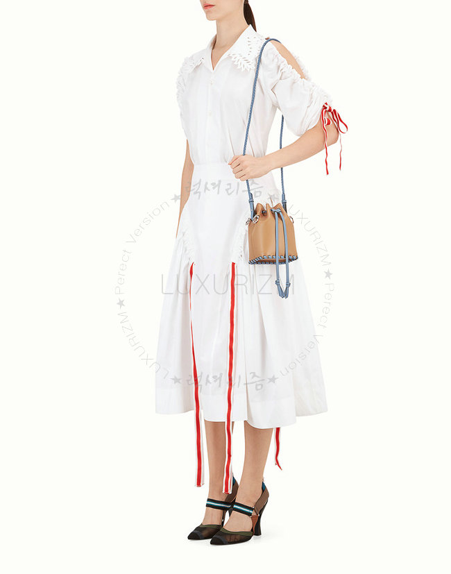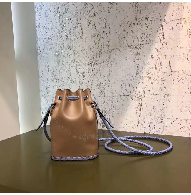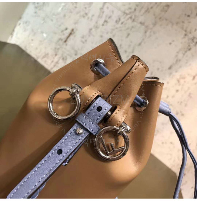 스몰 몽 트레죠르 버킷 백. 드로우스트링 잠금장치와 F is Fendi 로고