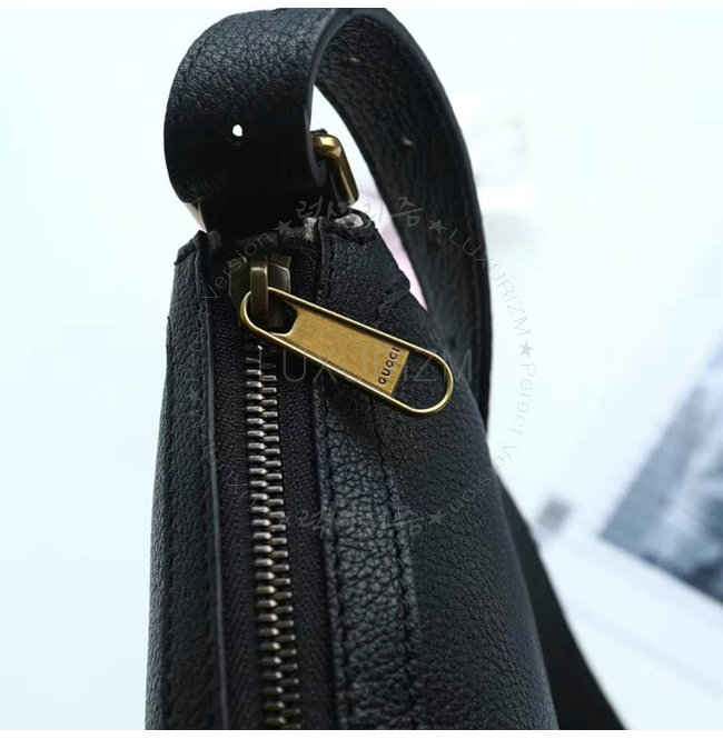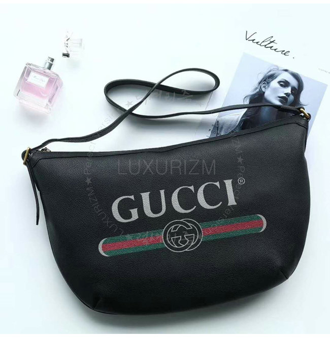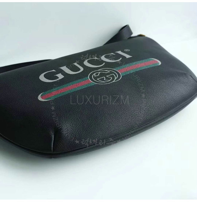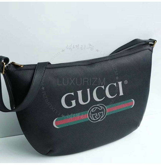 [스페셜오더]GUCCI-523588 8163 구찌 블랙 가죽 구찌 프린트 반달 모양 호보백