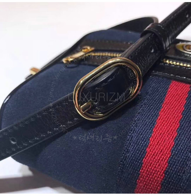 페이던트 가죽 트리밍 디테일의 스웨이드 블루/레드 Web디테일 골드톤 메탈장식 메탈 더블G 장식의