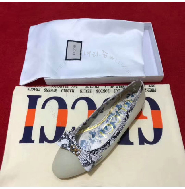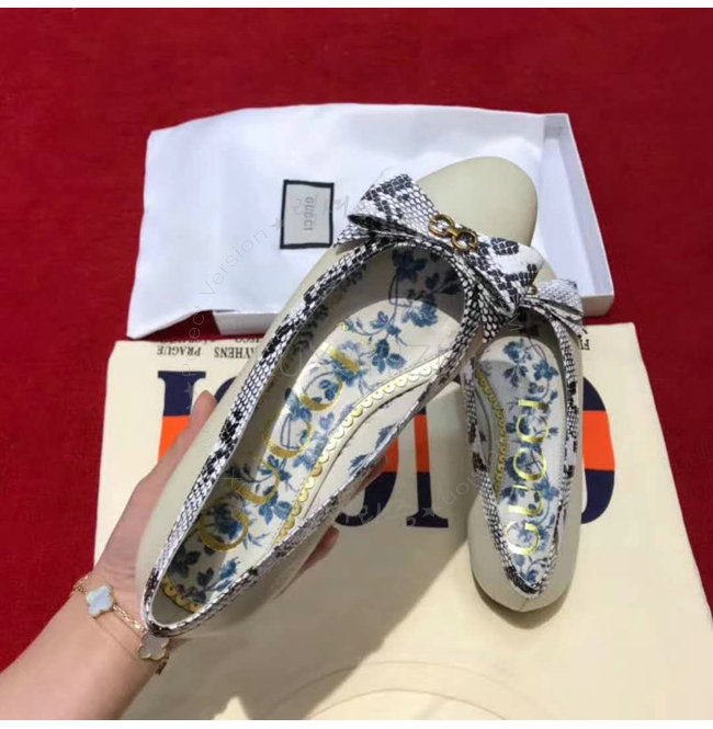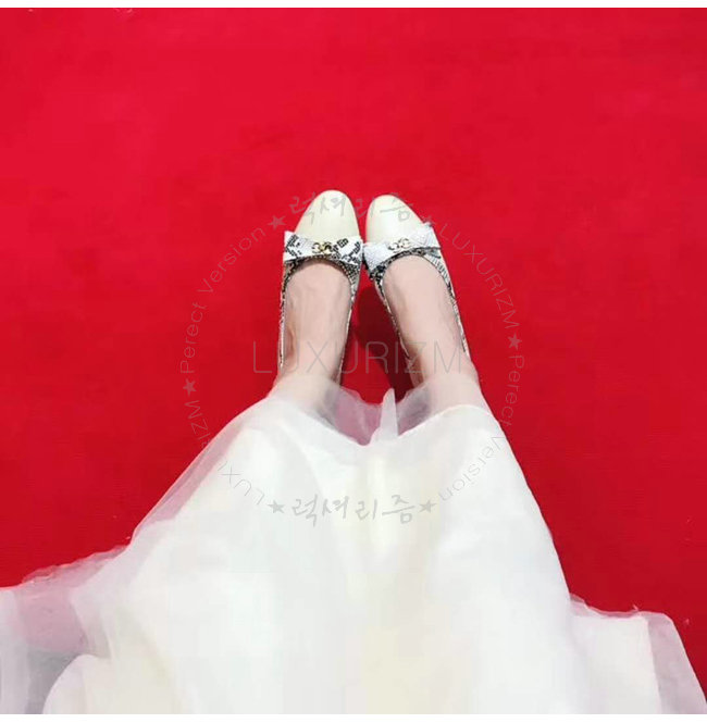 GUCCI-512465 9571 구찌 스네이크 스킨 보우 디테일 아이보리 가죽 발레 플랫