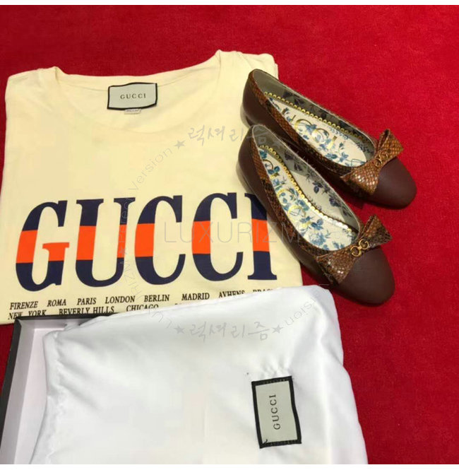 GUCCI-512465 9571 구찌 스네이크 스킨 보우 디테일 아이보리 가죽 발레 플랫 가격 : 240,000원