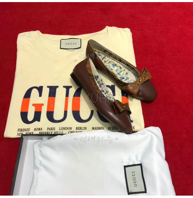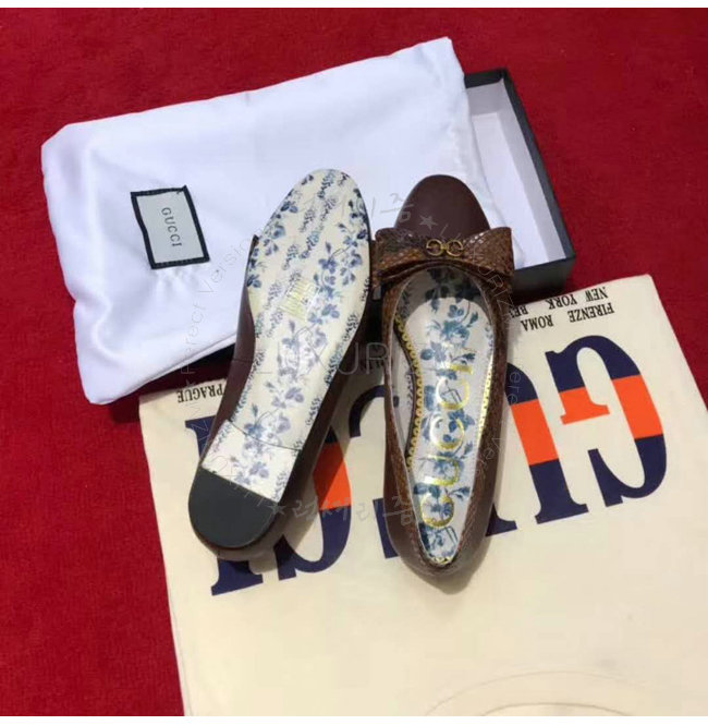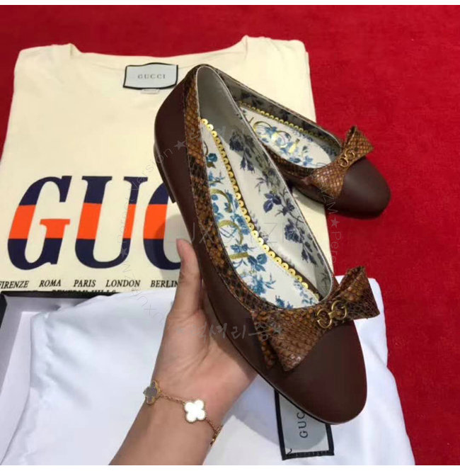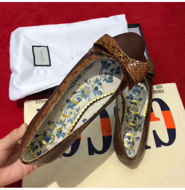 GUCCI-512465 2280 구찌 스네이크 스킨 보우 디테일 브라운 가죽 발레 플랫