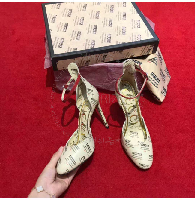 GUCCI-512447 9361 구찌 파라체르 구찌 스탬프 프린트 가죽 펌프스