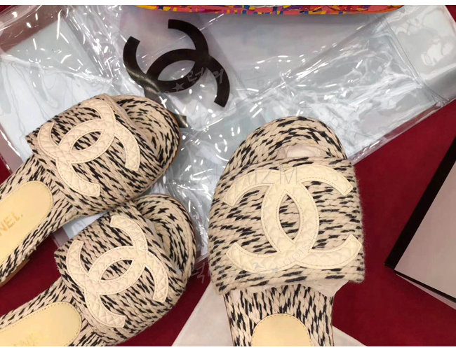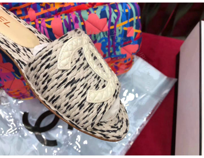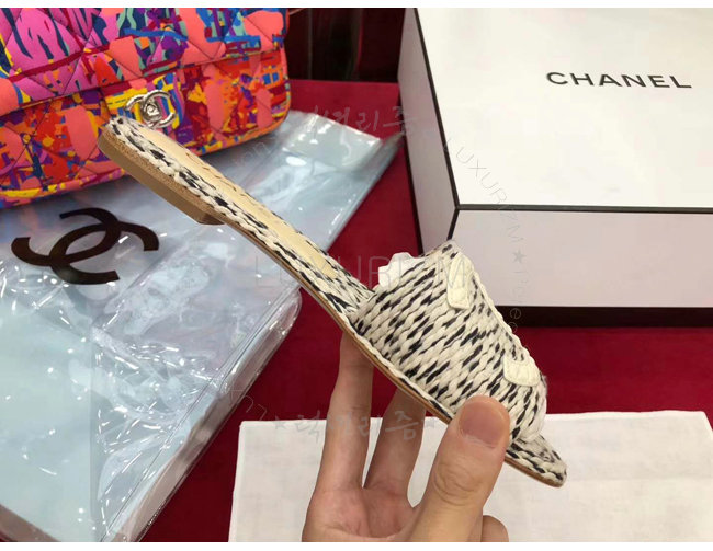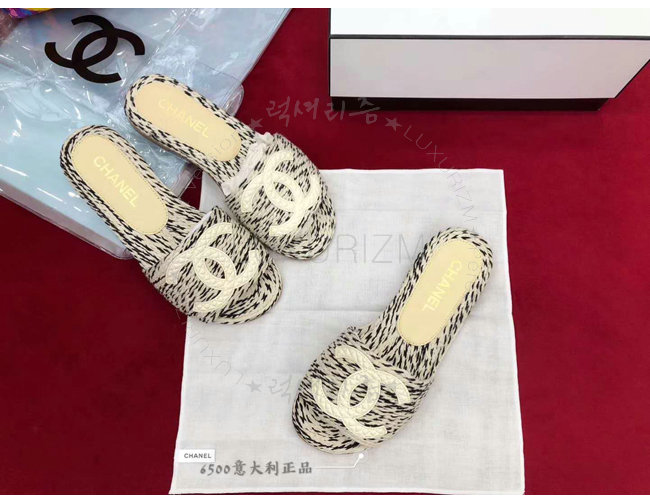 CHANEL-G33587 샤넬 코드 가죽 로고 장식 아이보리 뮬