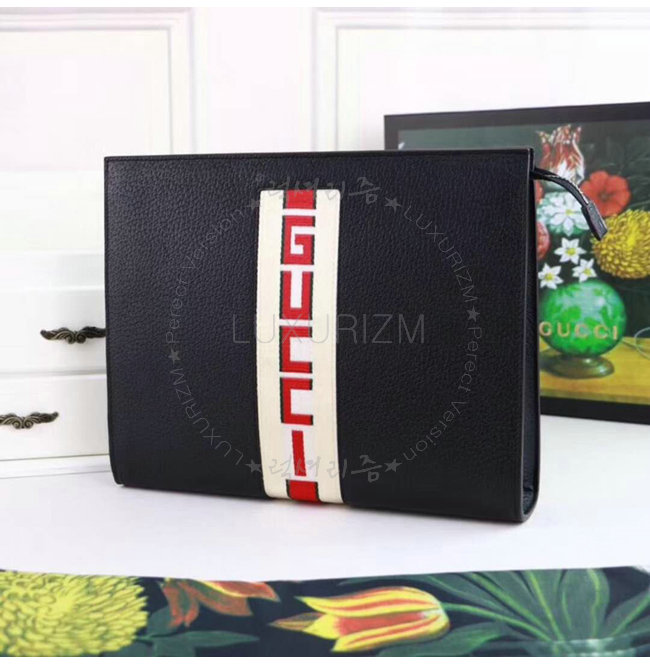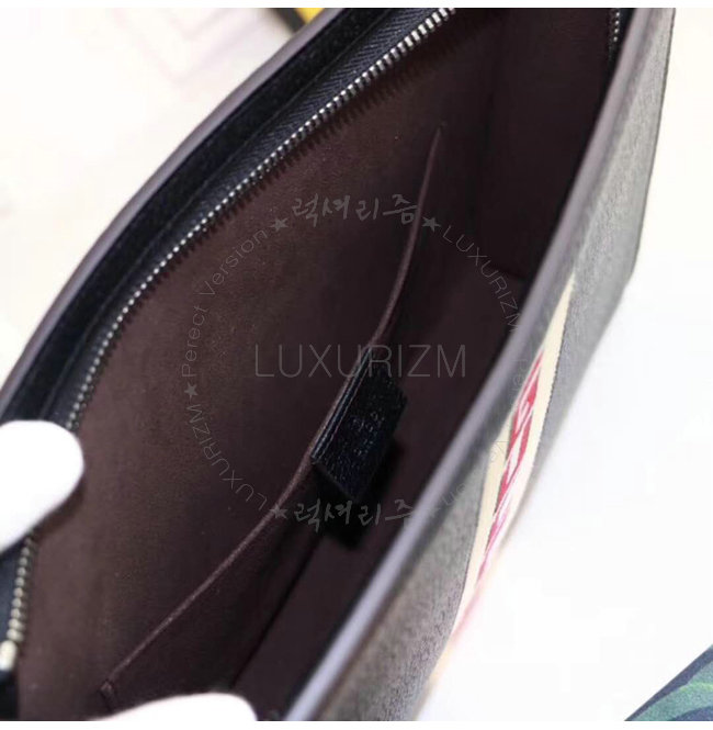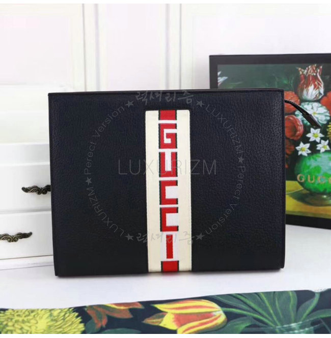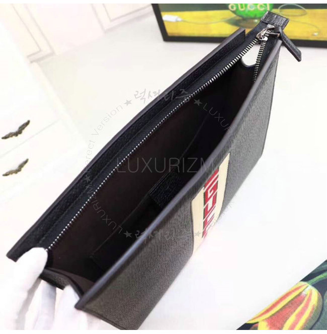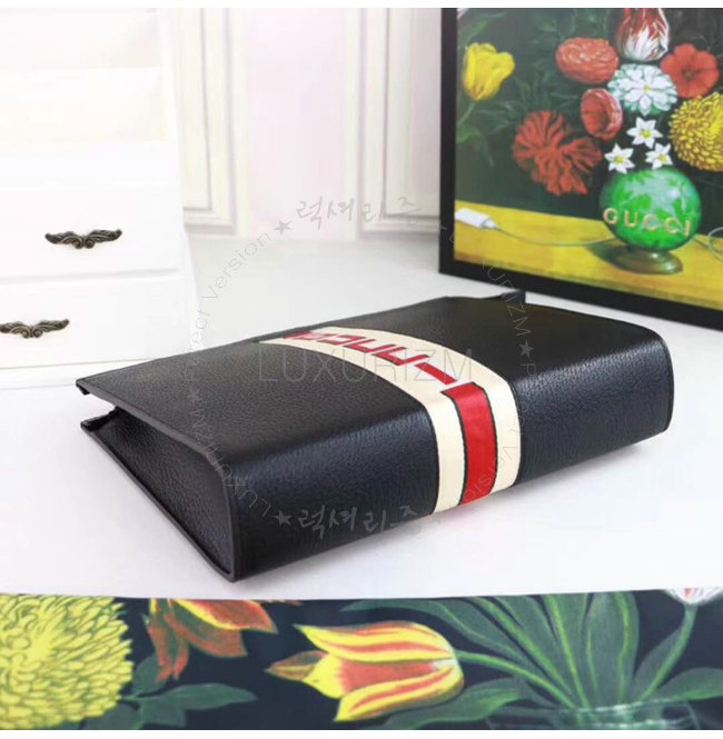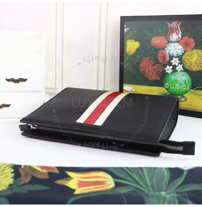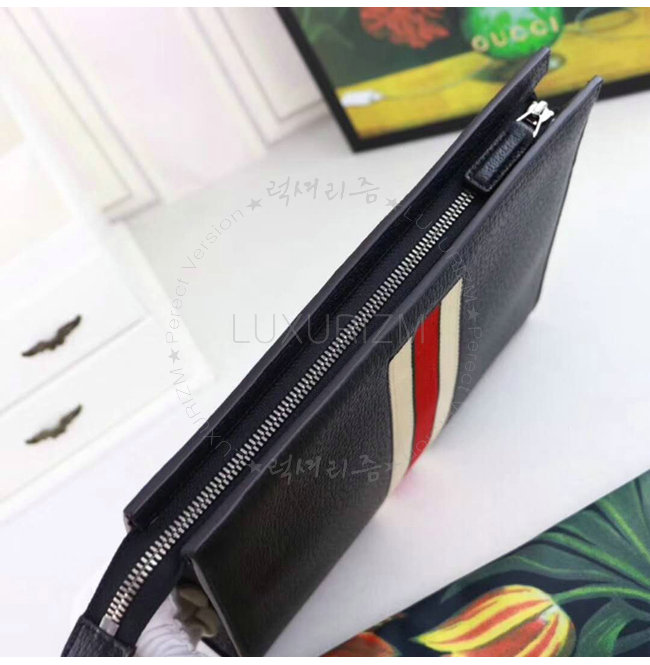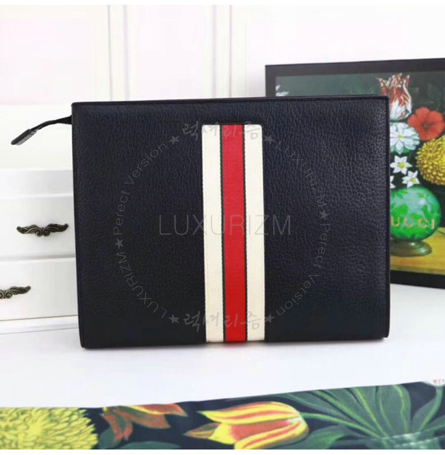 [스페셜오더]GUCCI-475316 1094 구찌 블랙 가죽 스트라이프 파우치