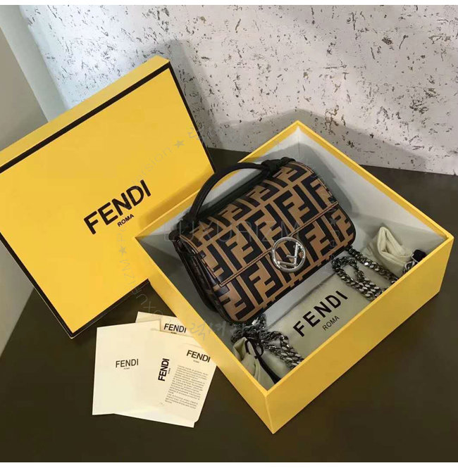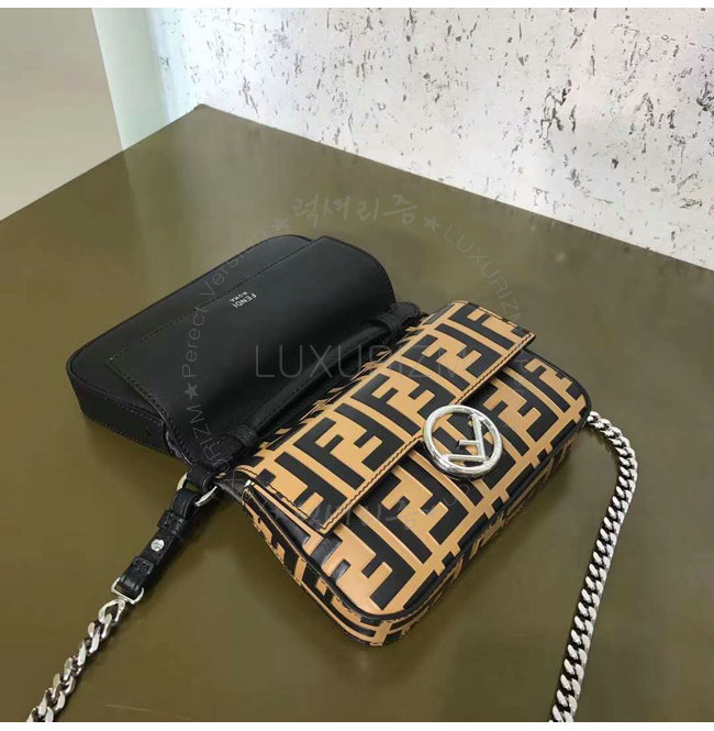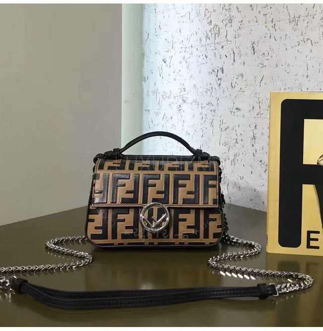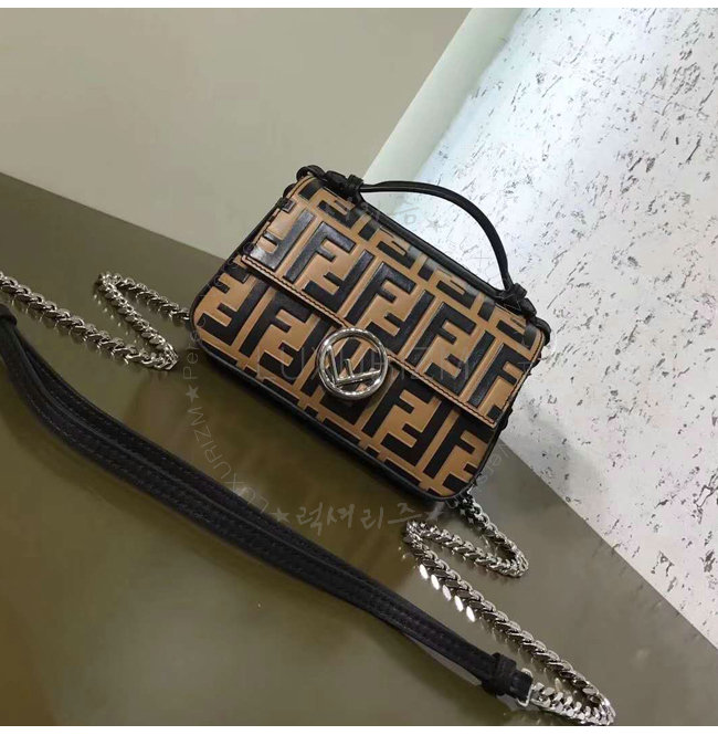 블랙과 타바코 컬러의 송아지 가죽 소재. 볼록한 아이코닉 더블 F 로고 프린트가