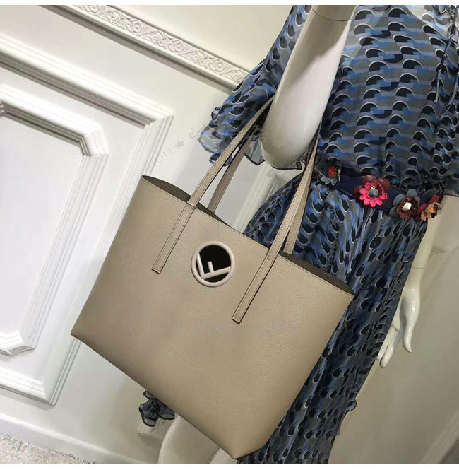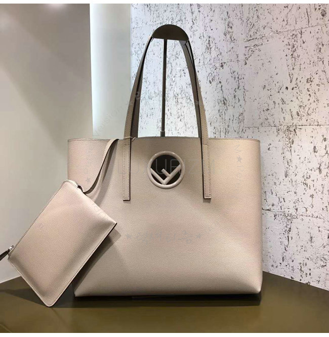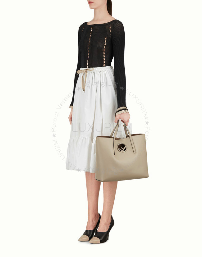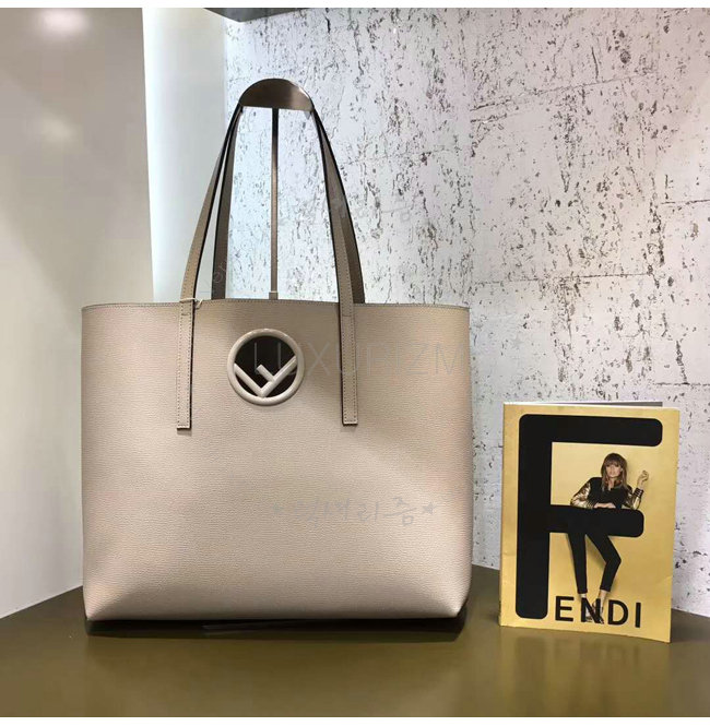 [스페셜오더]FENDI-8BH348 펜디 송아지 가죽 Fendi F 로고 트리밍 베이지 쇼퍼 백