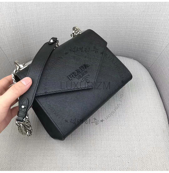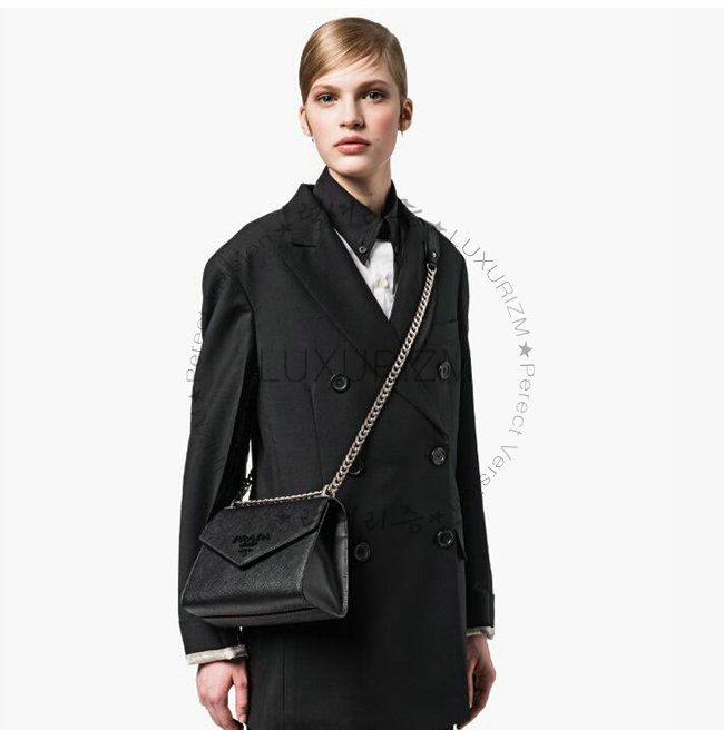 [스페셜오더]PRADA-1BD127 프라다 사피아노 가죽 블랙 모노크롬 숄더 백