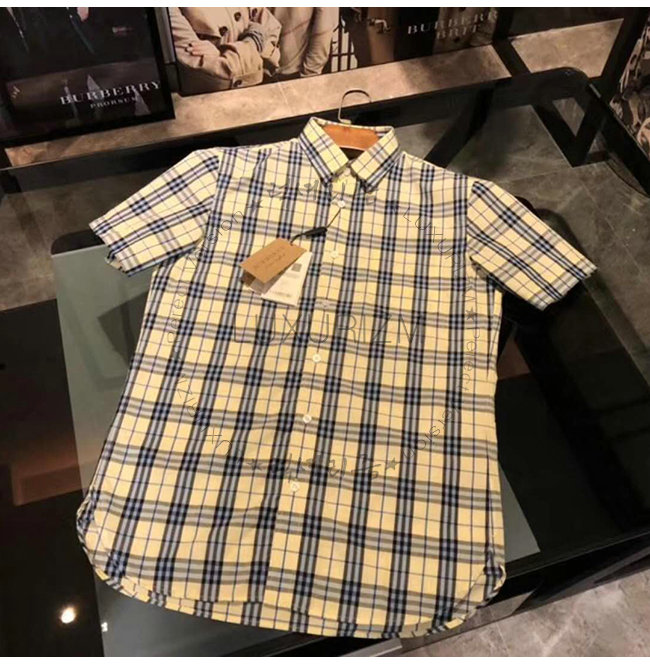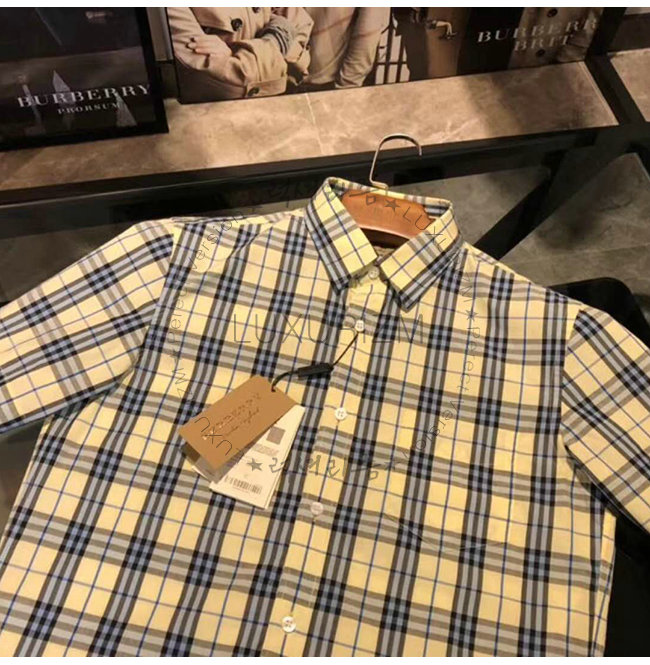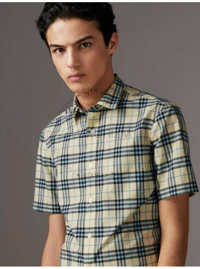 [스페셜오더]BURBERRY-80029271 버버리 쇼트 슬리브 초크 옐로 체크 셔츠