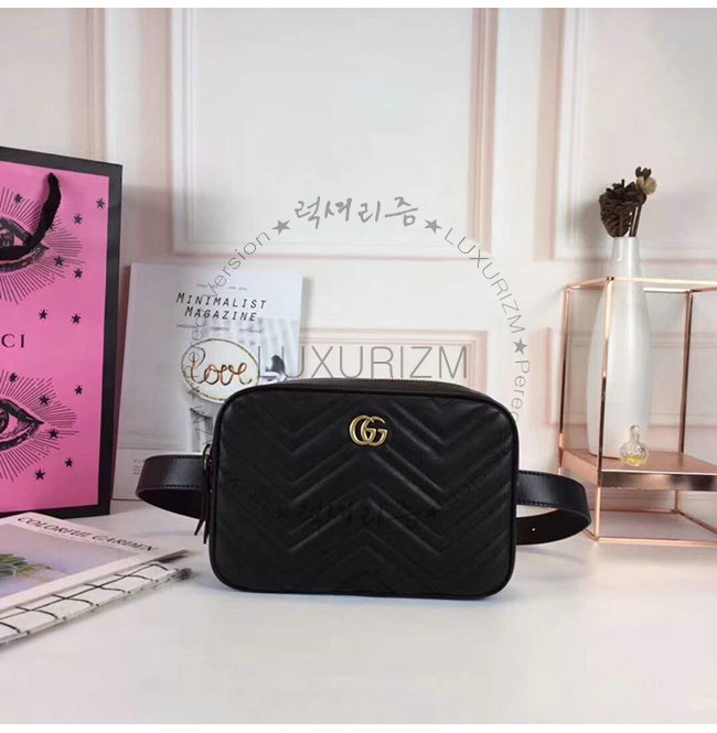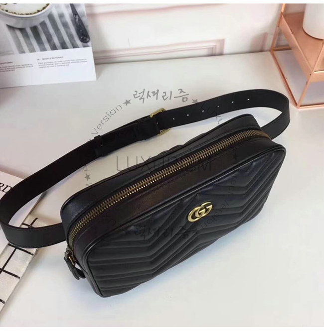 [스페셜오더]GUCCI-523380 1000 구찌 GG 마몽 블랙 마틀라세 가죽 벨트 백