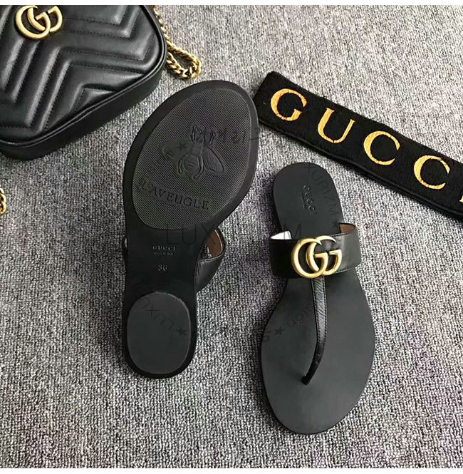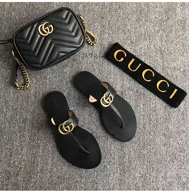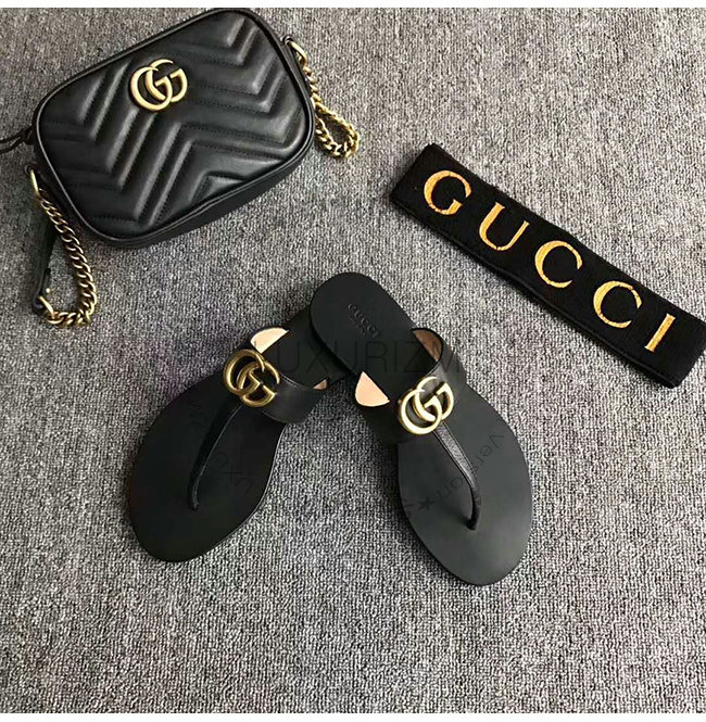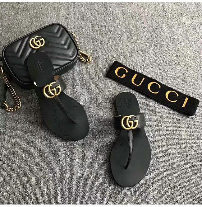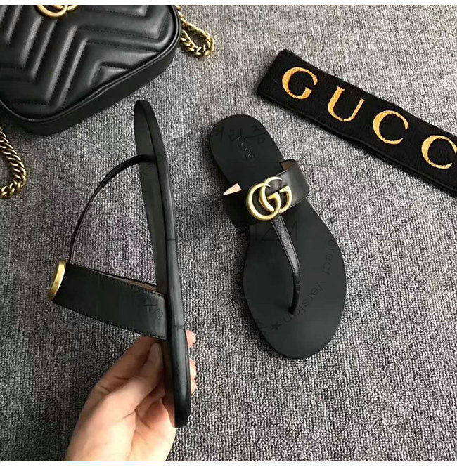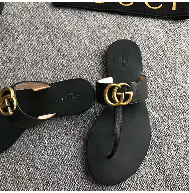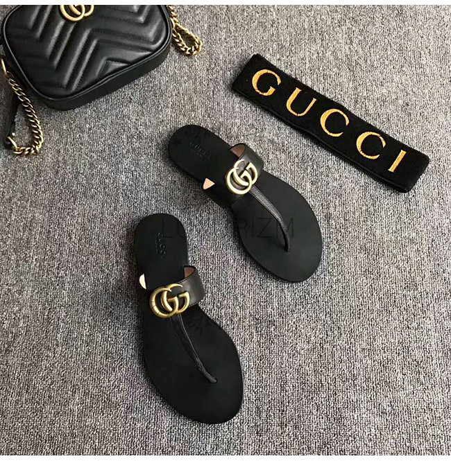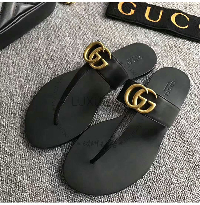 GUCCI-497444 1000 구찌 블랙 가죽 더블 G 샌들