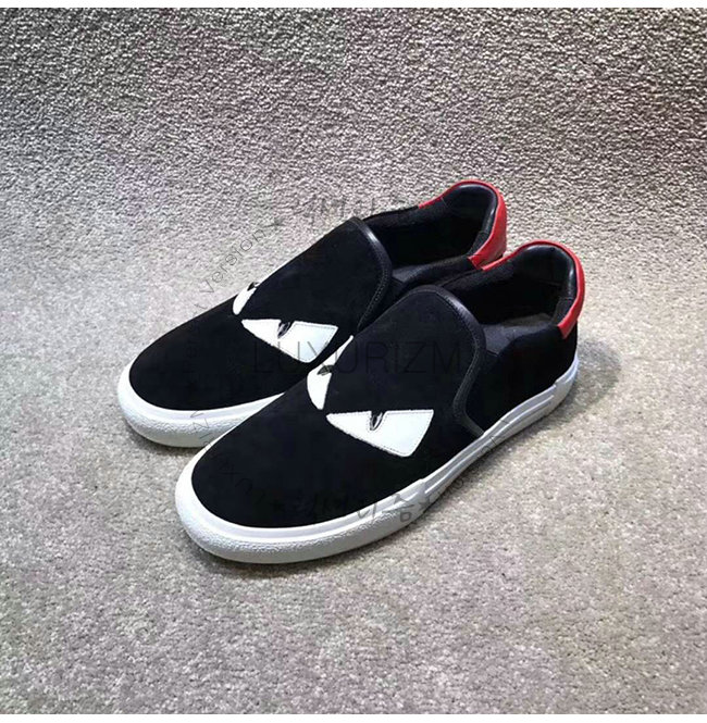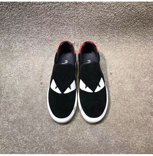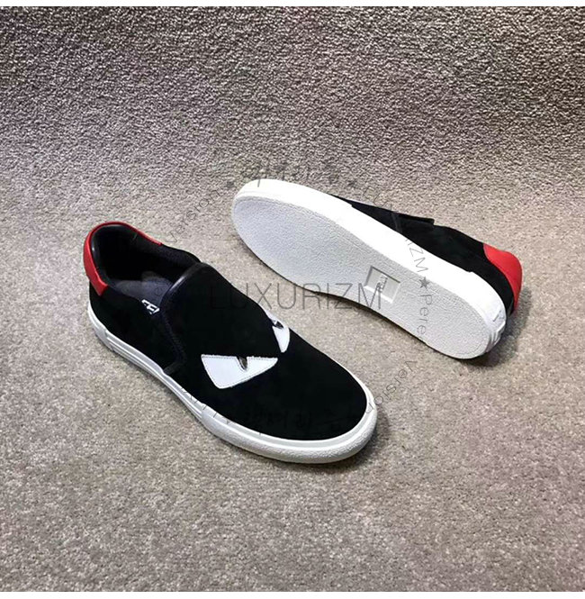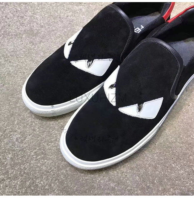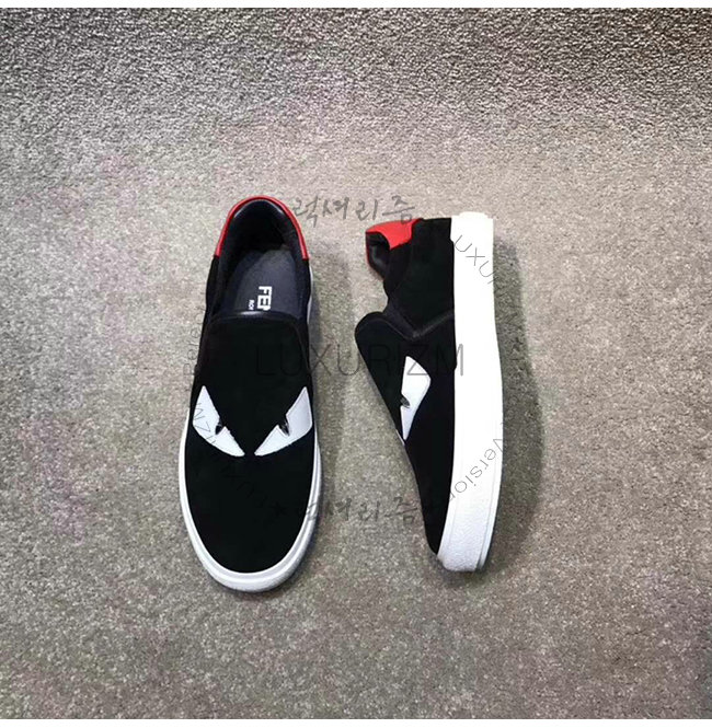 FENDI-7E1152 펜디 블랙 스웨이드 가죽 백 버그 아이 장식 슬립온 스니커즈