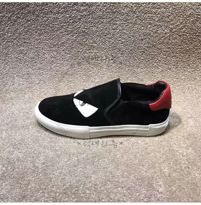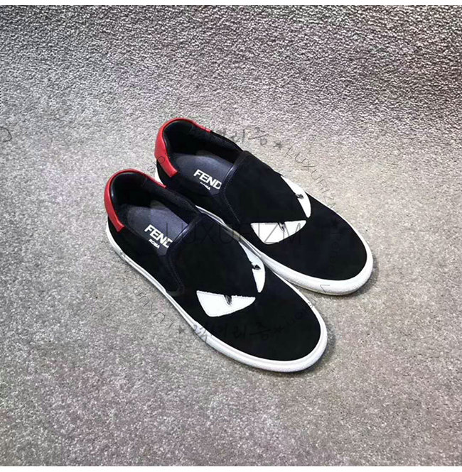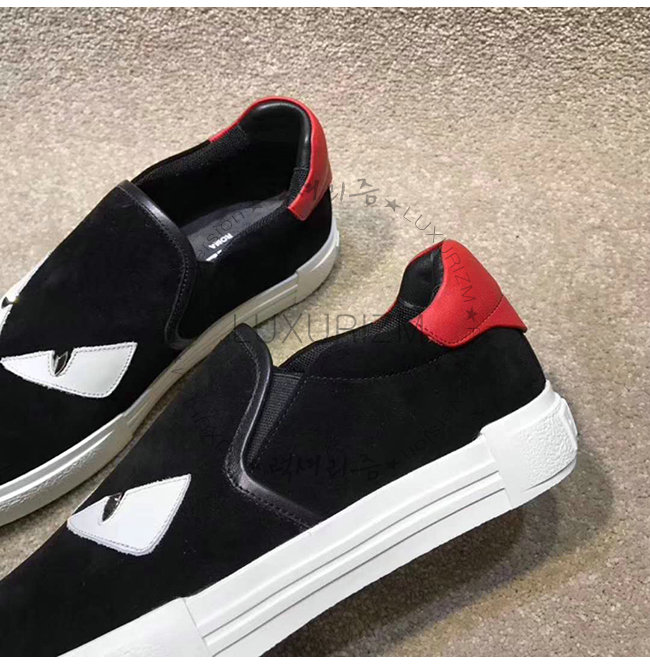 #펜디레플리카 펜디이미테이션신발 펜디쇼핑몰추천 럭셔리즘 FENDI-7E1152 펜디 블랙 스웨이드 가죽 백 버그 아이 장식 슬립온 스니커즈