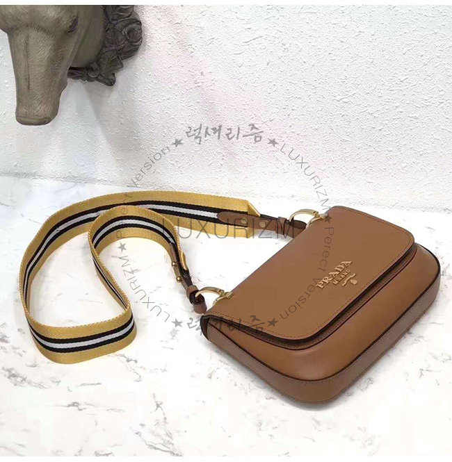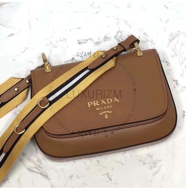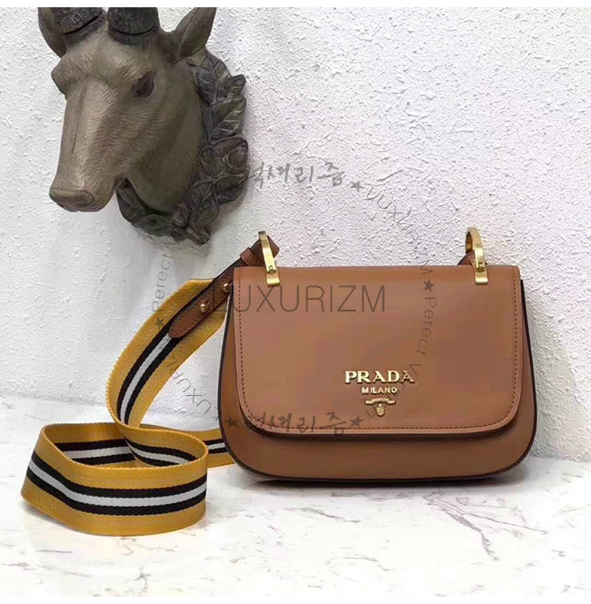 [스페셜오더]PRADA-1BD110 프라다 브라운 송아지 가죽 멀티컬러 숄더 스트랩 백