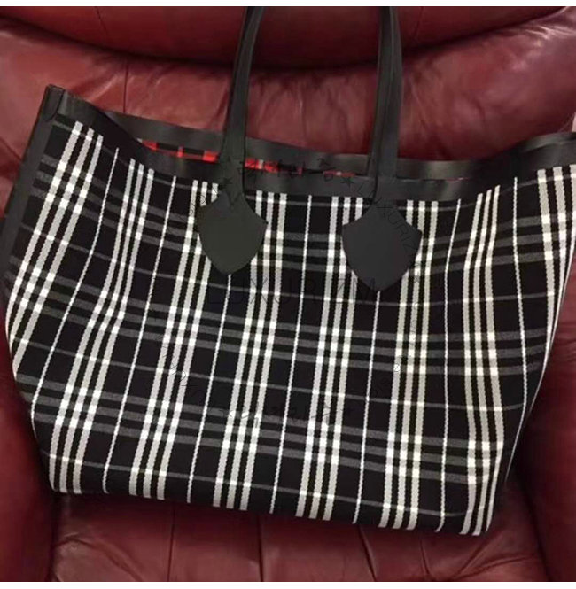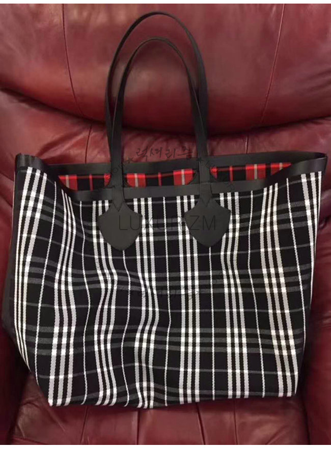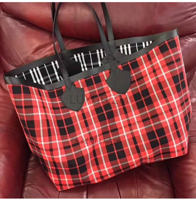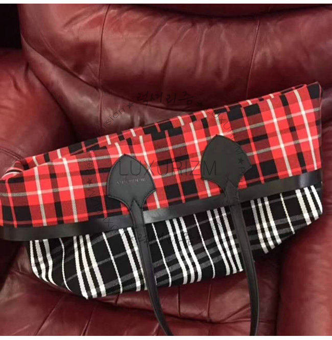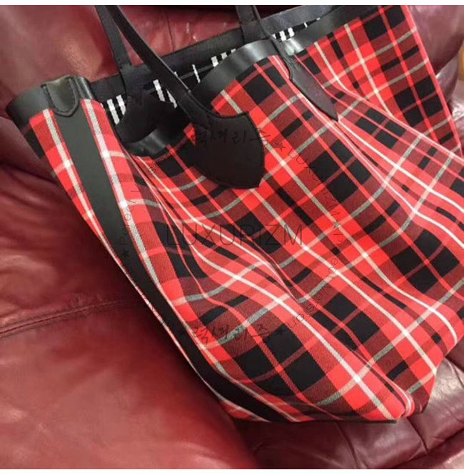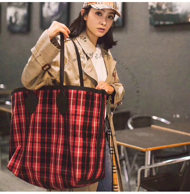 [스페셜오더]BURBERRY-40700531 버버리 자이언트 타탄 코튼 바이브런트 레드 블랙 라지 리버시블 토트 백