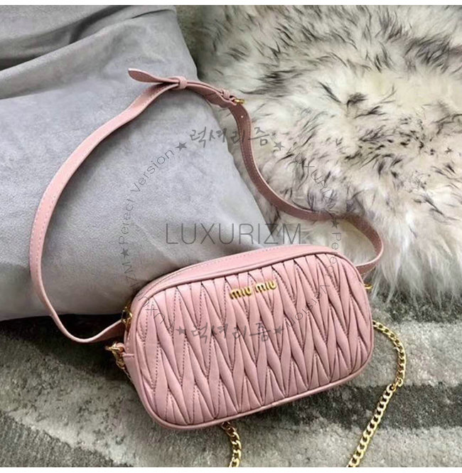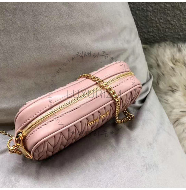 [스페셜오더MIUMIU-5BL005 미우미우 핑크 마틀라세 가죽 벨트 백