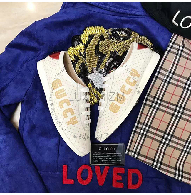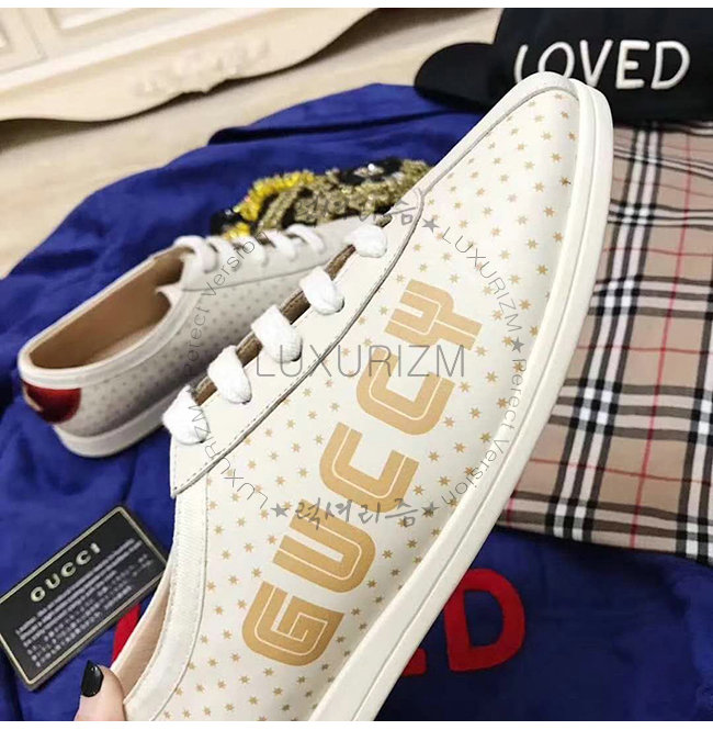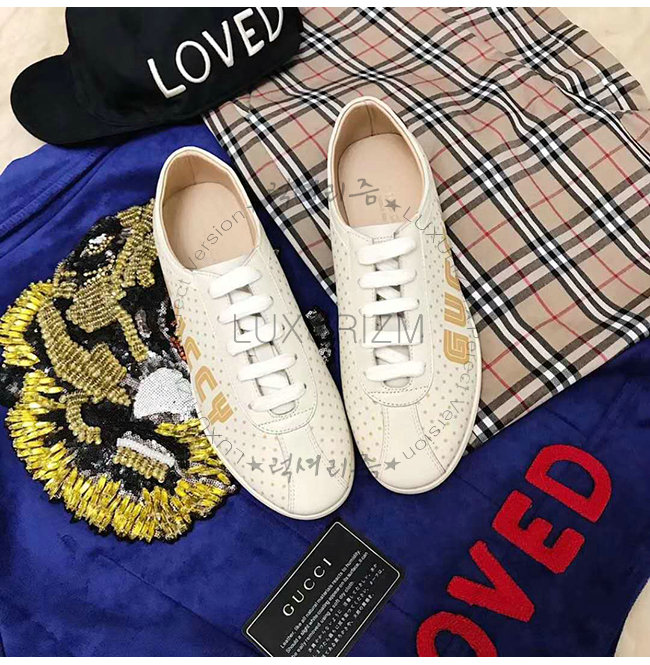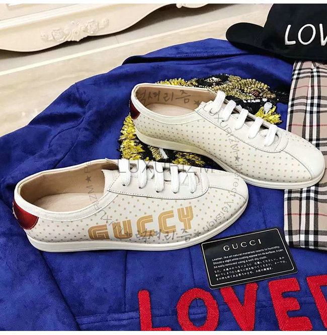 GUCCI-519718 9068 구찌 화이트 가죽 파라체르 Guccy 프린트 스니커즈