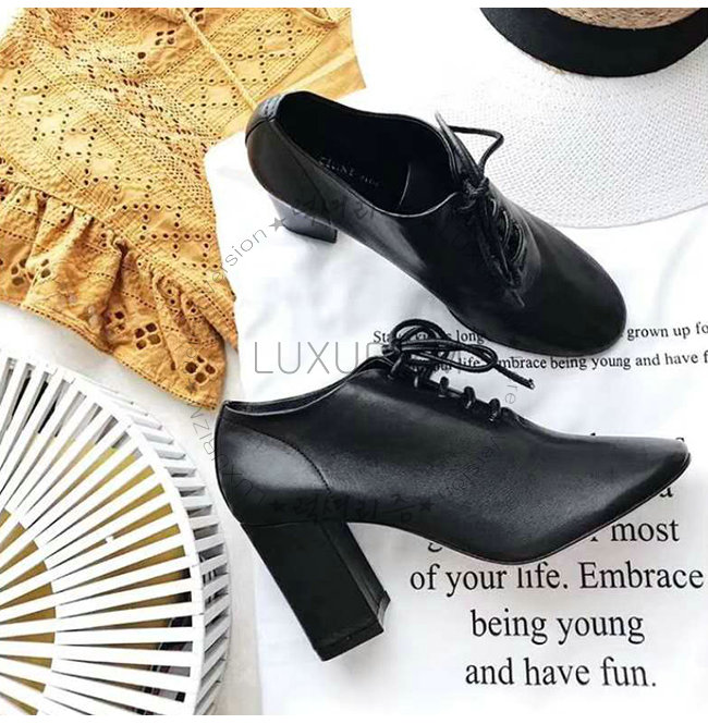 CELINE-325983 셀린느 램스킨 블랙 댄스 레이스업 하이힐 로퍼