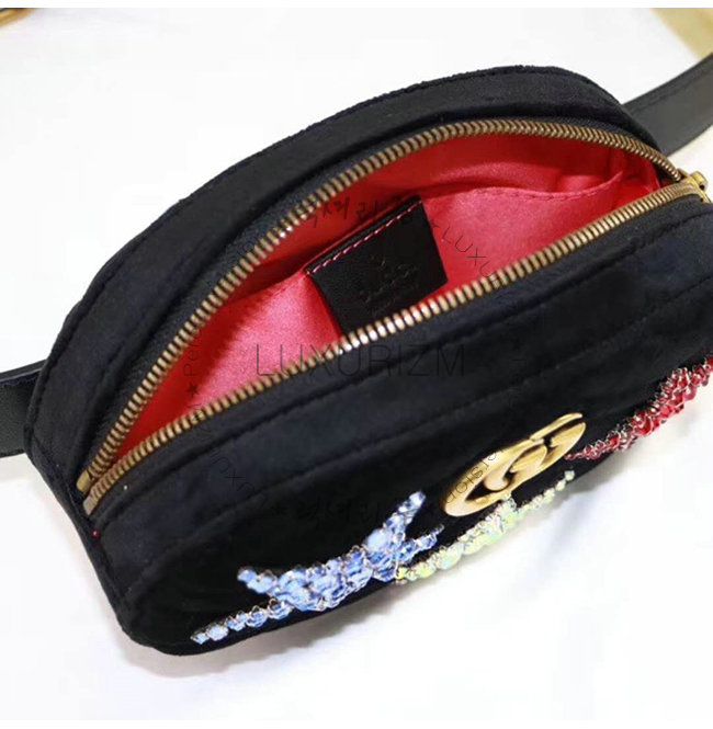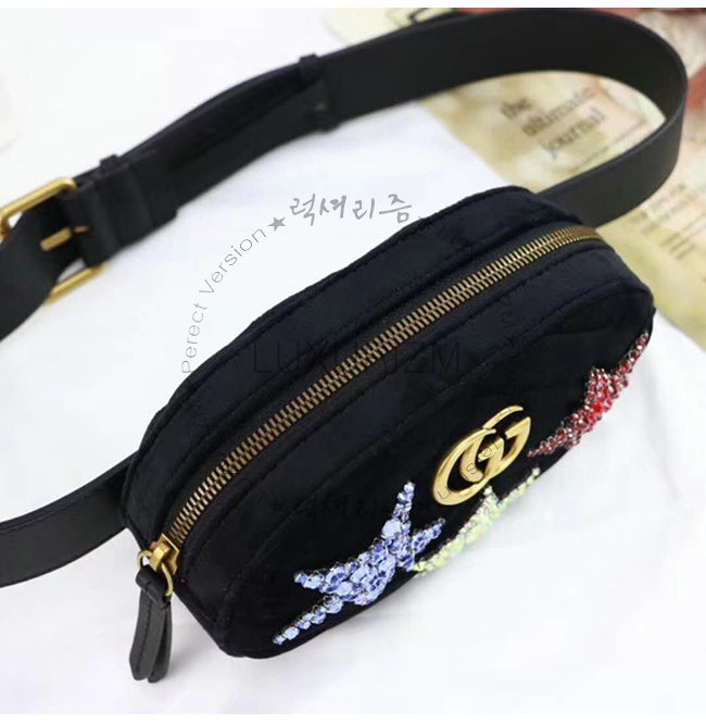[스페셜오더]GUCCI-476434 1081 구찌 GG Marmont 크리스탈 장식 블랙 벨벳 벨트 백