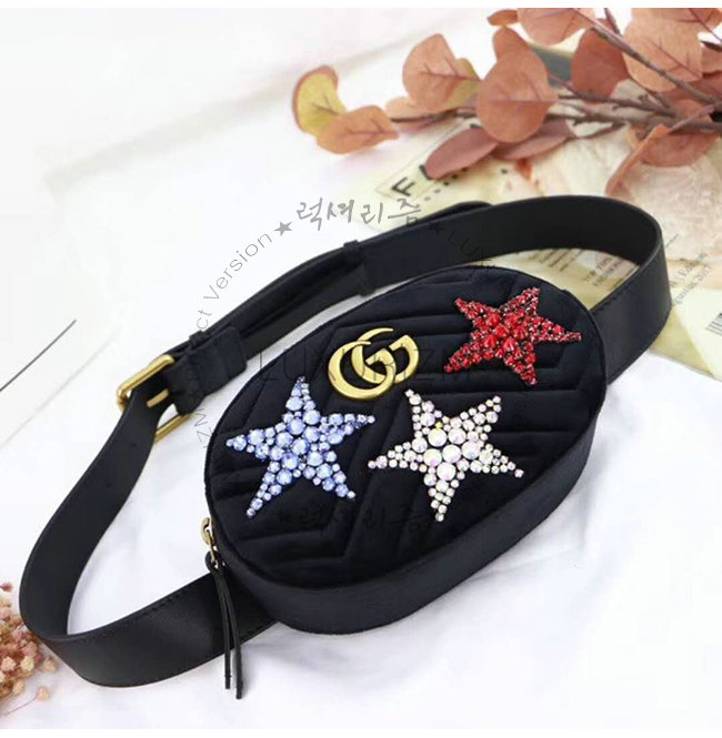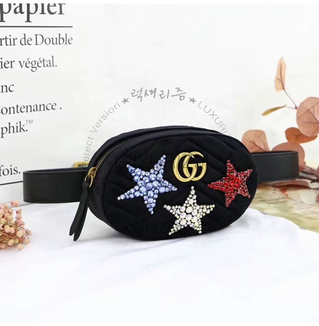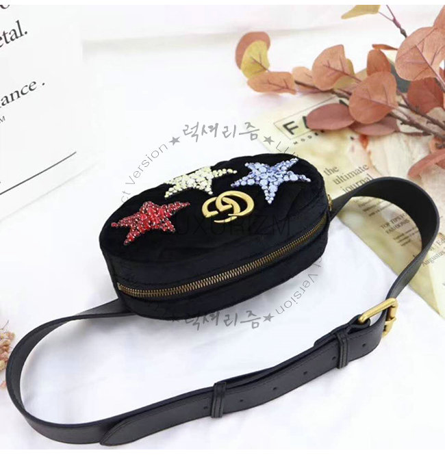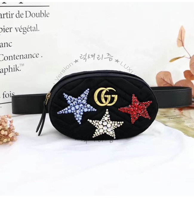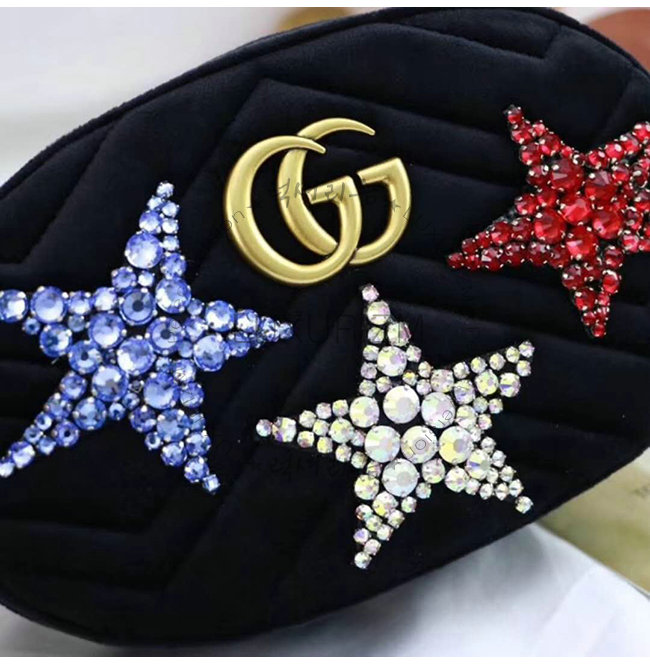 [스페셜오더]GUCCI-476434 1093 구찌 GG Marmont 블랙 벨벳 크리스탈 스타 아플리케 벨트 백