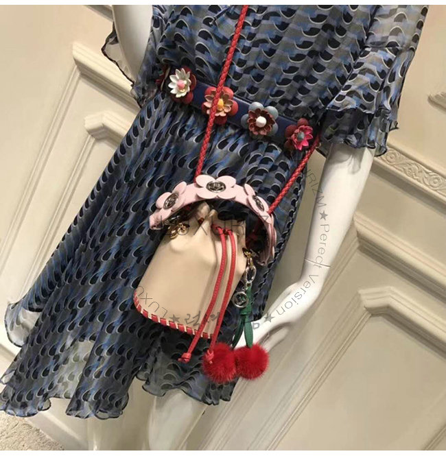 스몰 몽 트레죠르 버킷백.드로우스트링 잠금장치와 F is Fendi