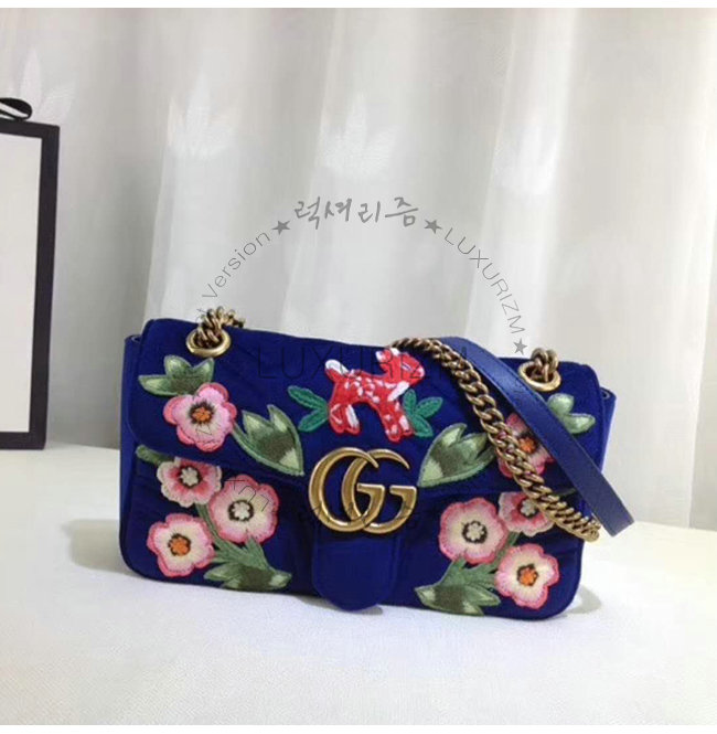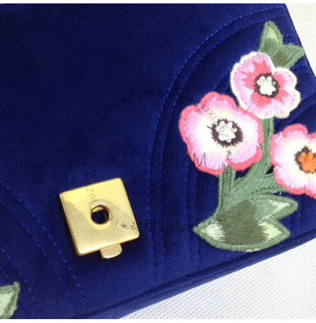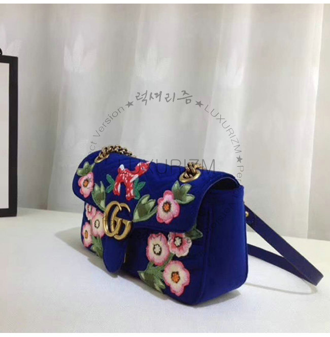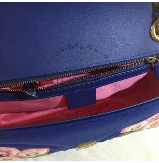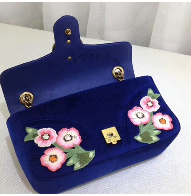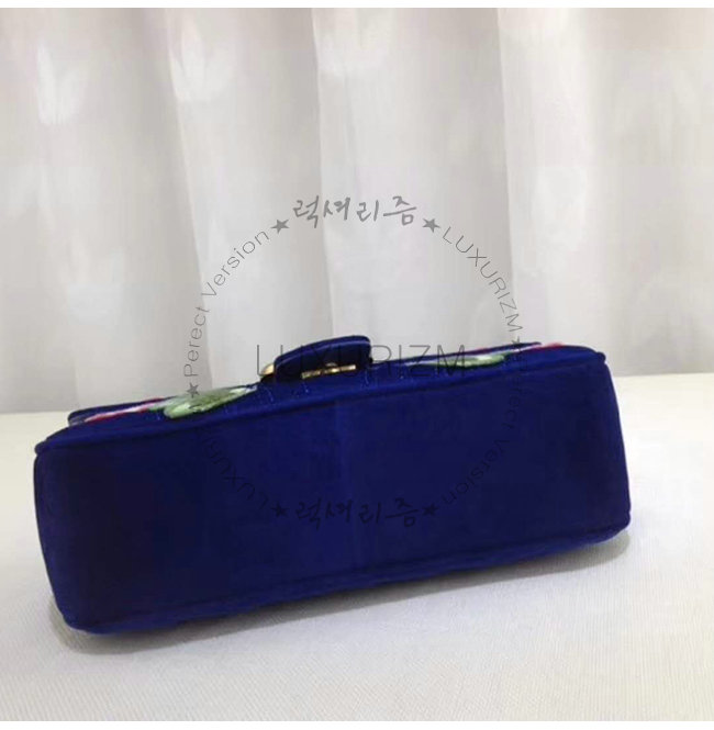[스페셜오더]GUCCI-443497 4567 구찌 GG마몽 블루 벨벳 플라워 아플리케 스몰 숄더백