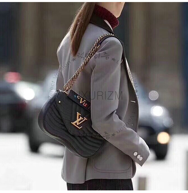루이 비통 뉴 웨이브 체인 백 PM은 최고급 소가죽으로 제작되었습니다. 상단 핸들쪽에 루이