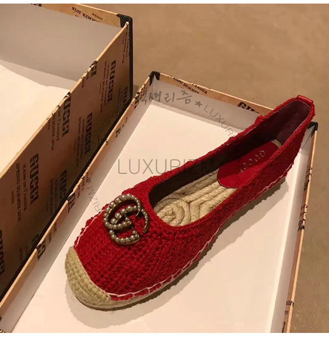 GUCCI-524974 6465 구찌 레드 코튼 크로쳇 에스파드리유