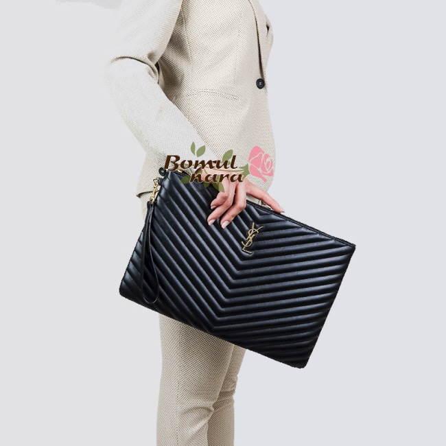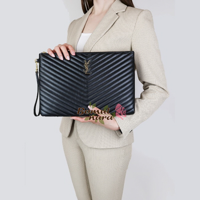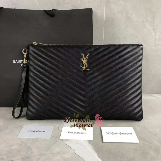 [스페셜오더]SAINT LAURENT-440222 생 로랑 블랙 금장 모노그램 퀄팅 라지 클러치